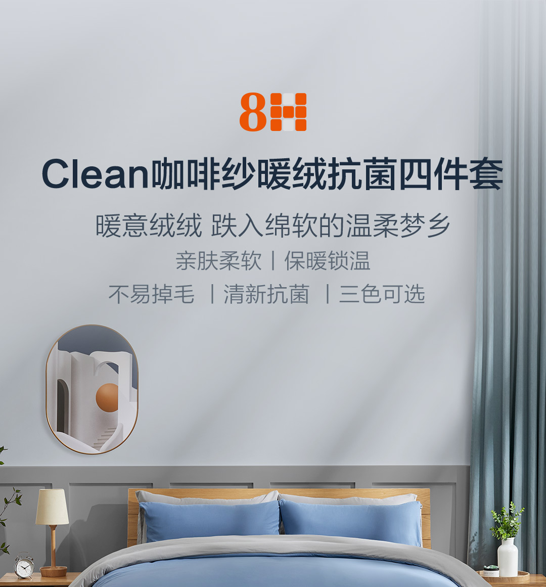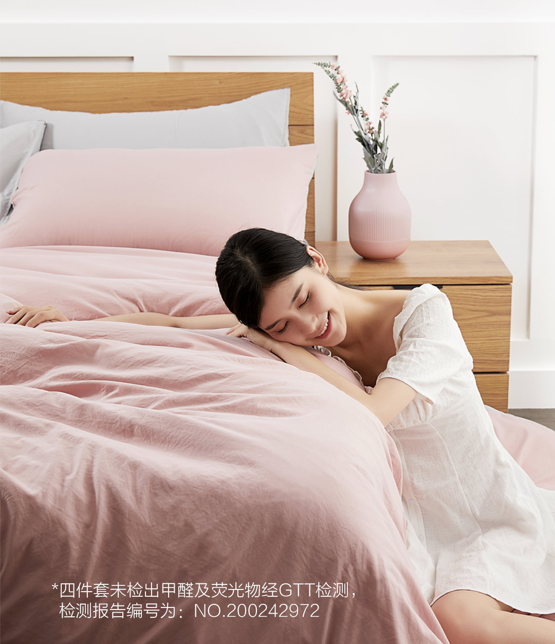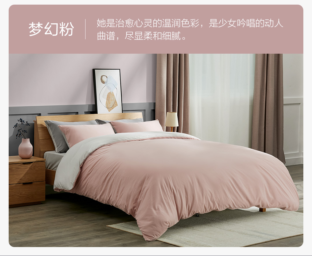 8H Clean咖啡纱暖绒抗菌四件套 JK 1.5米床四件套 梦幻粉