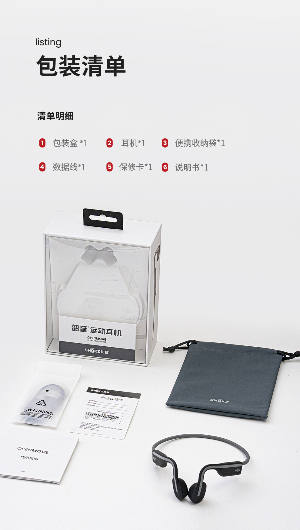 韶音(SHOKZ)OpenMove S661 骨传导蓝牙耳机开放式运动跑步骑行耳机 单位:条 神秘灰