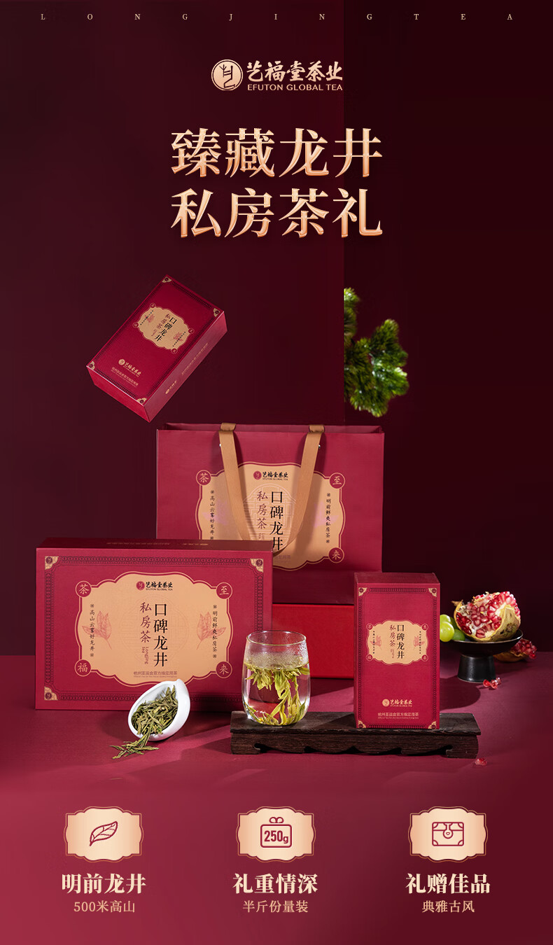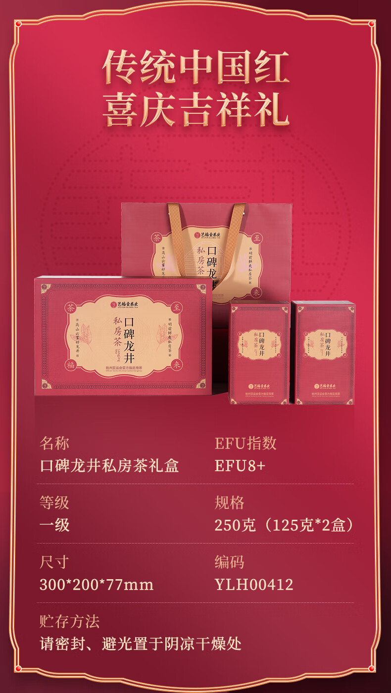 艺福堂 一级龙井 龙井茶杭州私房茶礼盒 250g 红色(单位:盒)