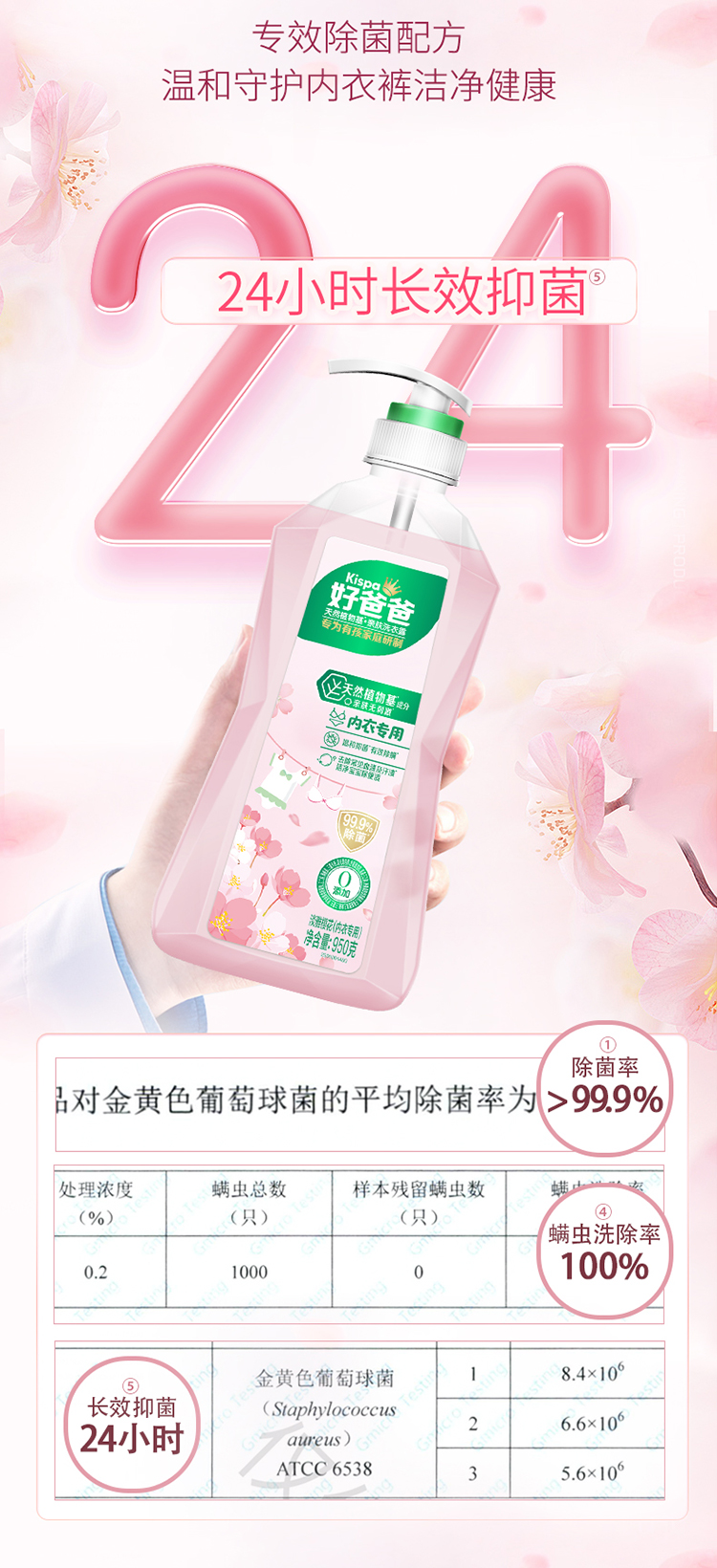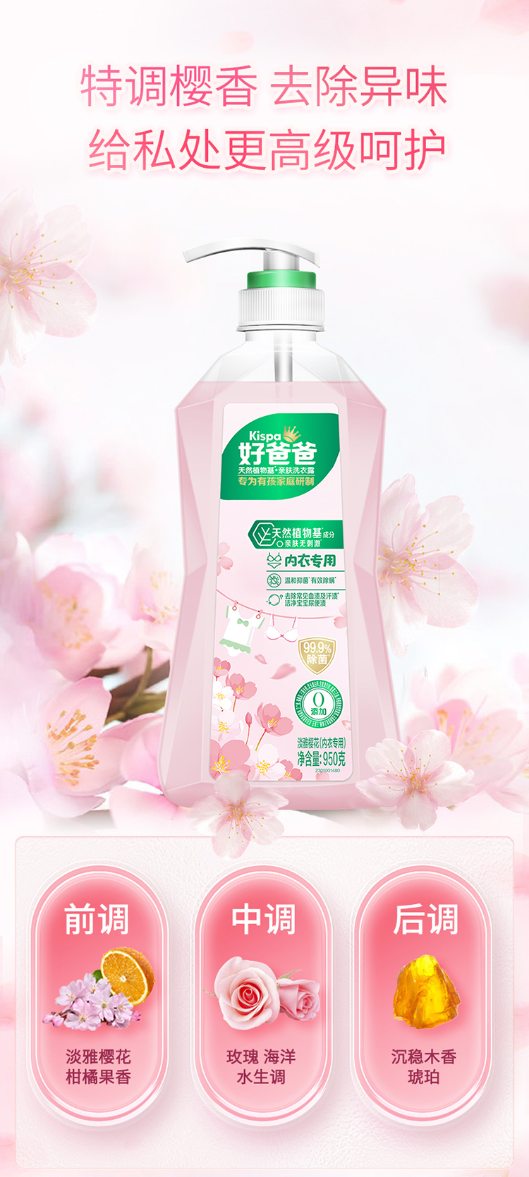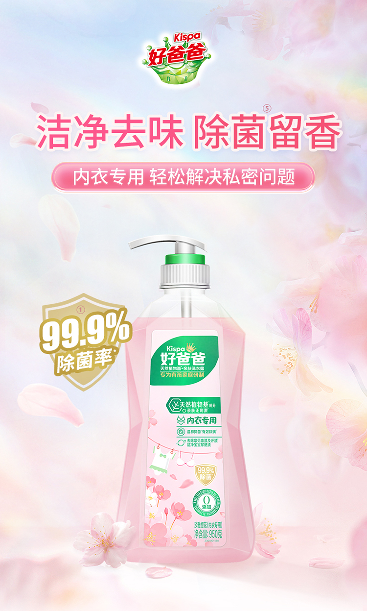 好爸爸(Kispa) 天然植物基亲肤内衣专用洗衣露950g(单位:瓶) 粉色