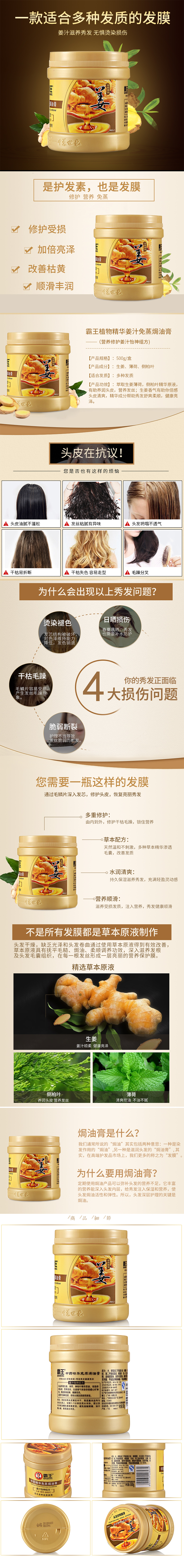 霸王(BAWANG)植物精华免蒸焗油膏(姜汁怡神组方)10101021626 500g(单位:瓶) 琥珀色