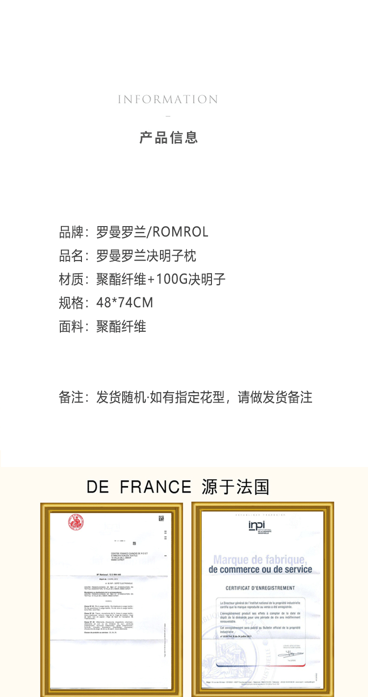 罗曼罗兰纤维枕(决明子) 48x74cm 白色