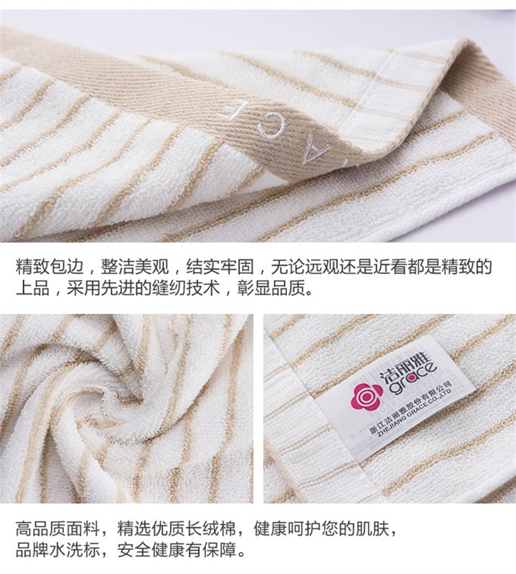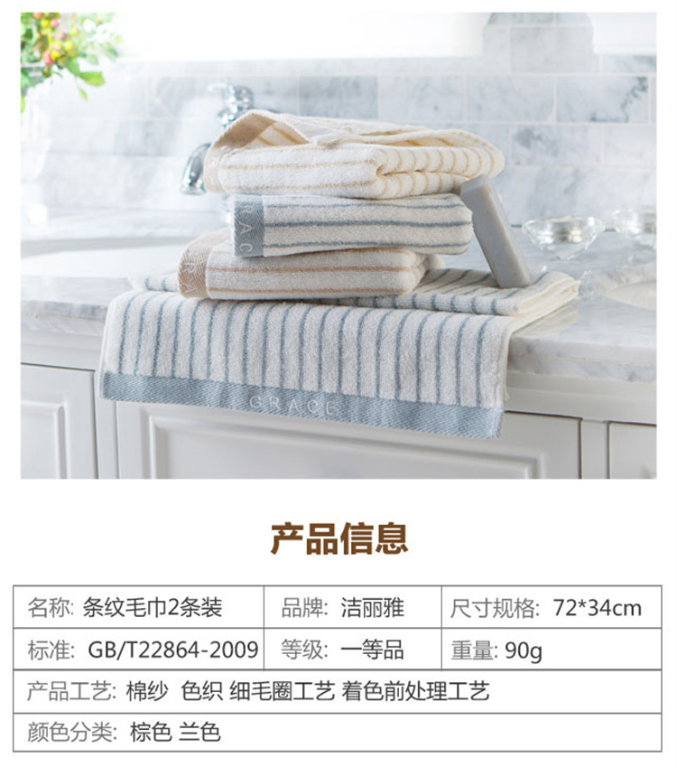 洁丽雅毛巾2条经典条纹系列纯棉强吸水毛巾 6450(单位:条) 混色
