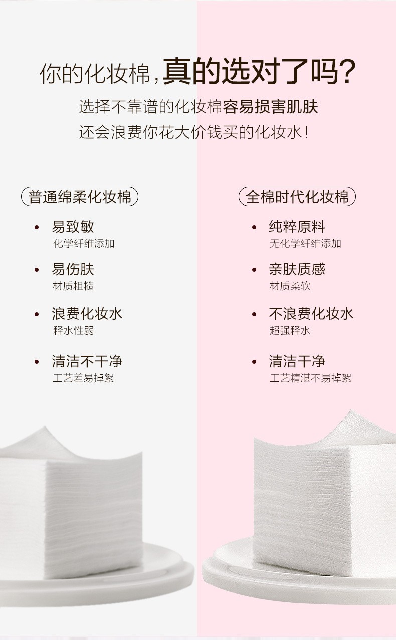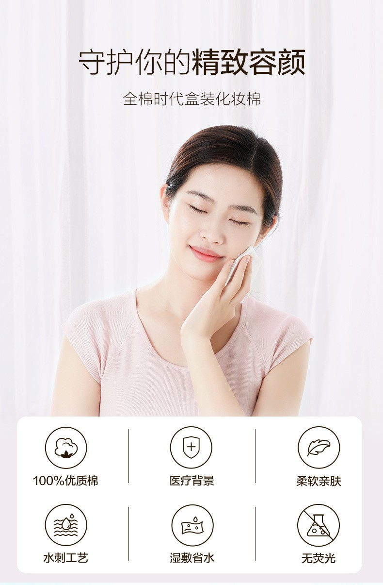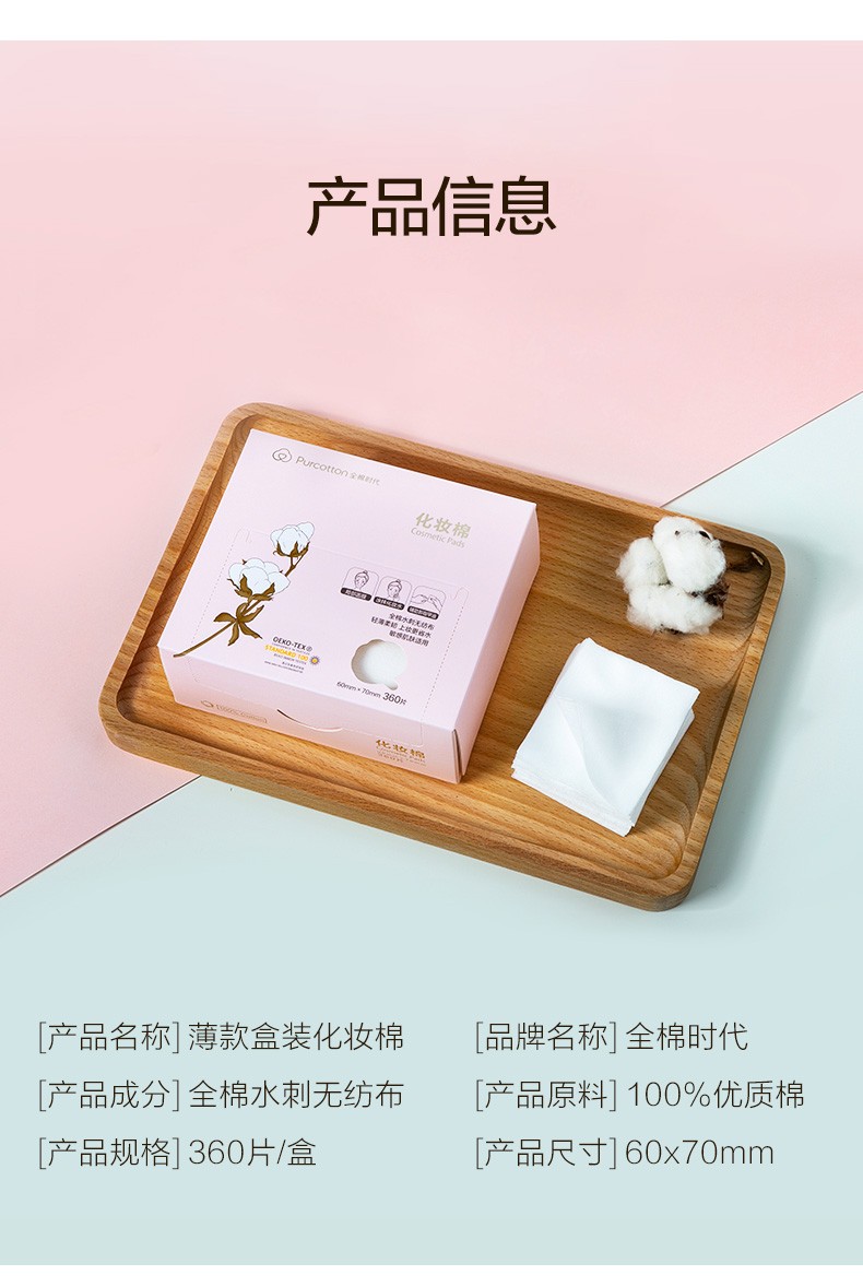 全棉时代 盒装化妆棉 平纹无纺布50g 6x7cm 360片 盒