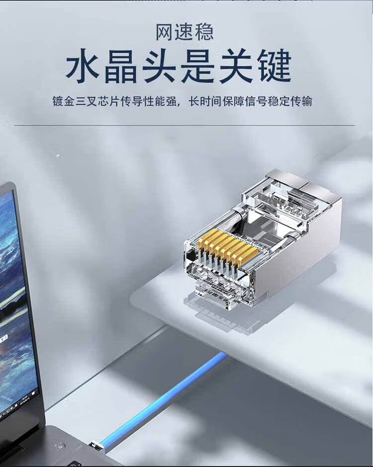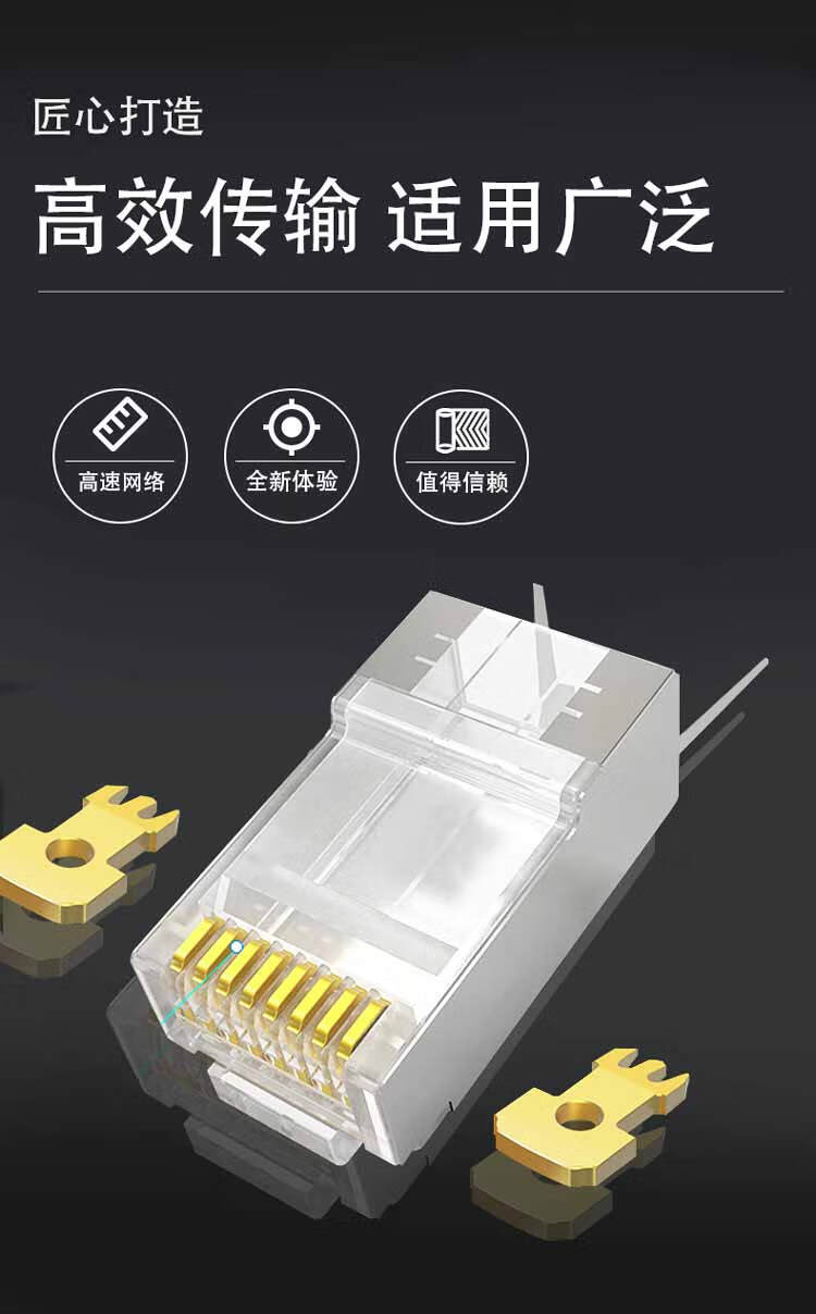 中云智创 七类水晶头CAT7两件式水晶头带尾夹1.3mm七类屏蔽50U镀金 20只/包 透明色