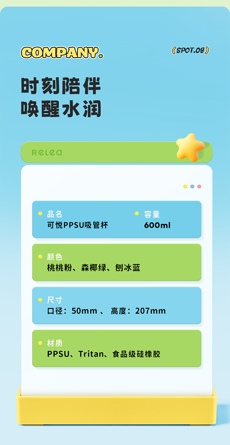 物生物可悦PPSU吸管杯600ML 单位:个 桃桃粉
