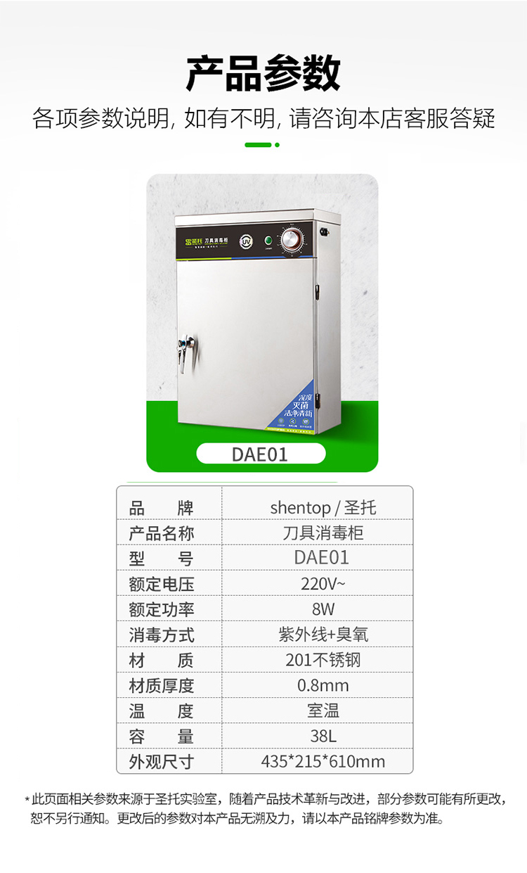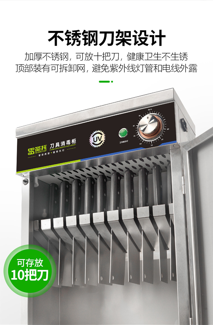 圣托(Shentop)38L壁挂式刀具消毒柜 紫外线刀具消毒箱商用 酒店饭店厨房带锁消毒刀箱 DAE01一台 不锈钢色