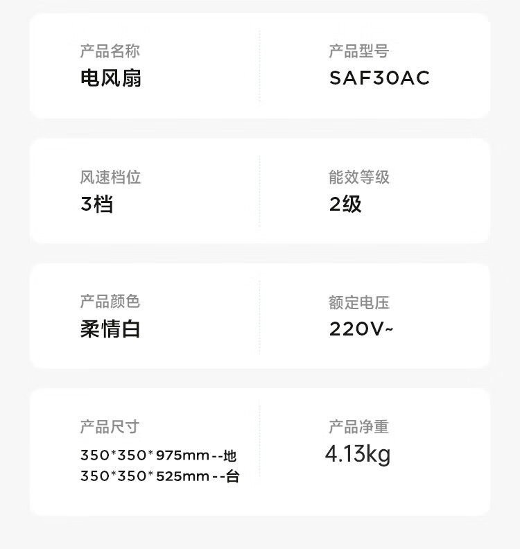 美的(Midea) SAF30AC 3档 无定时风力档位 柔情白(单位:个)