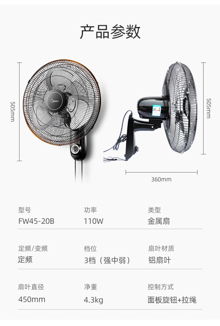 美的(Midea) FW45-20B 110W 18寸3叶 黑色(单位:个)