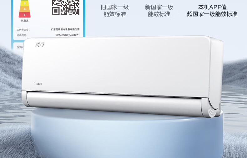 美的(Midea)1.5匹空调 风尊 时尚版 变频冷暖机 KFR-35GW/N8MXC1 台 白色