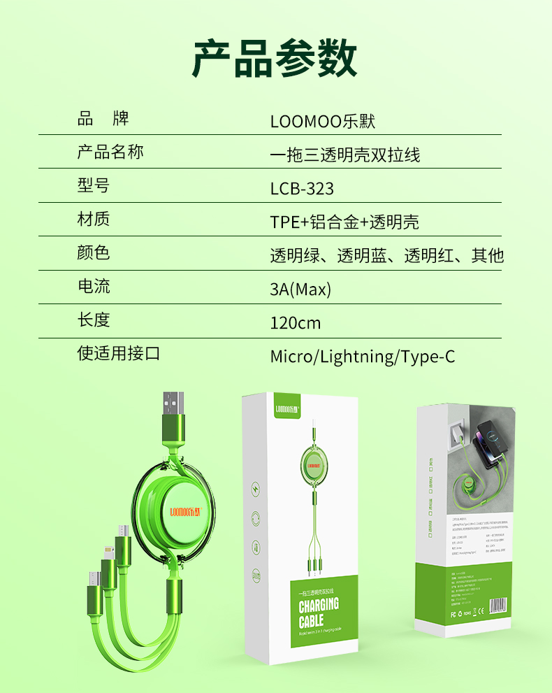 loomoo乐默一拖三透明壳双拉线 绿色