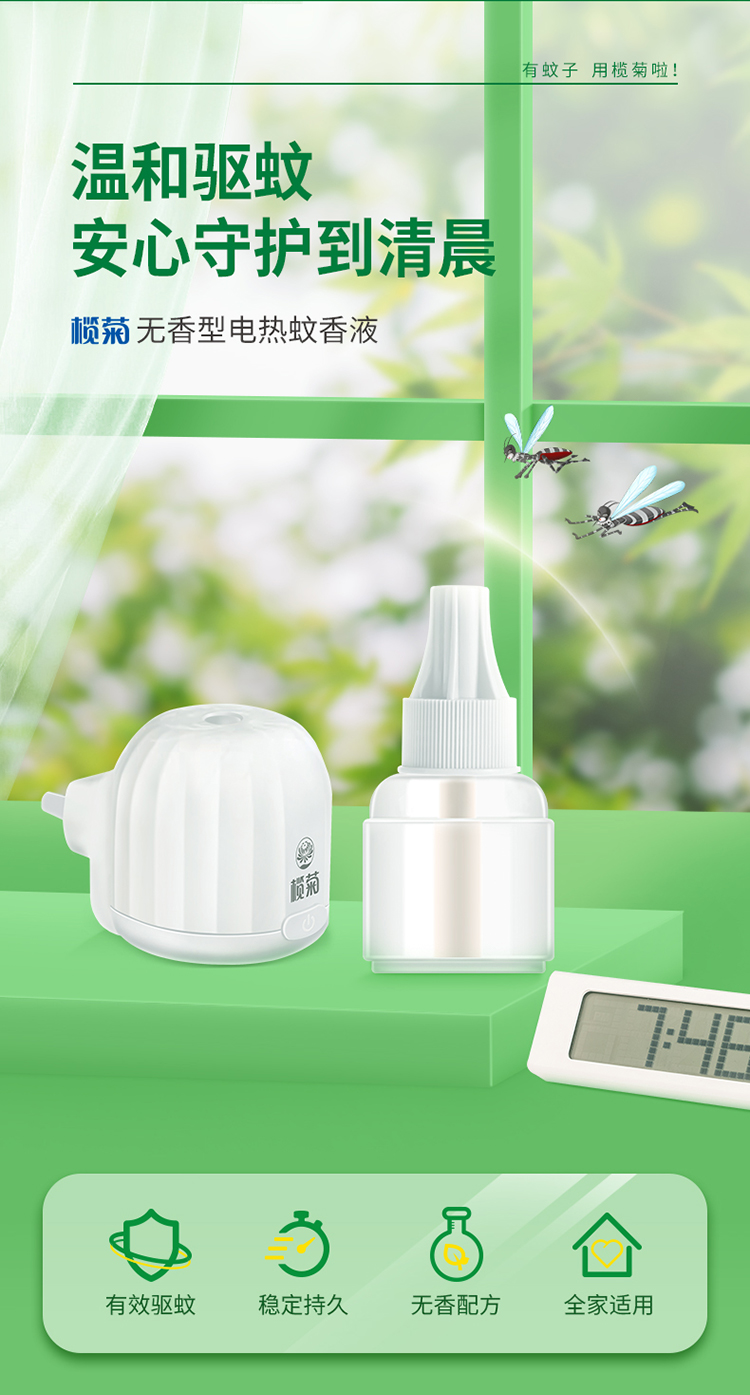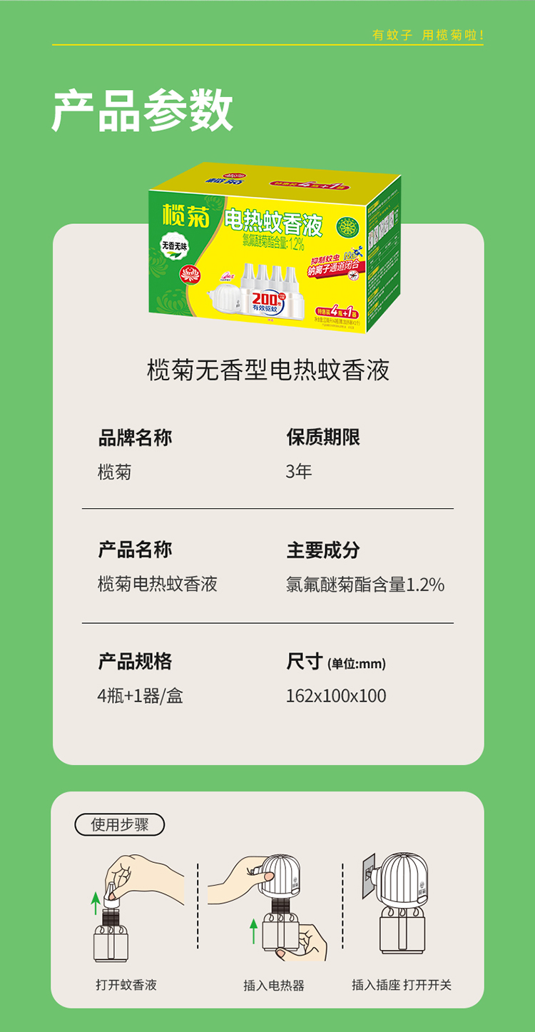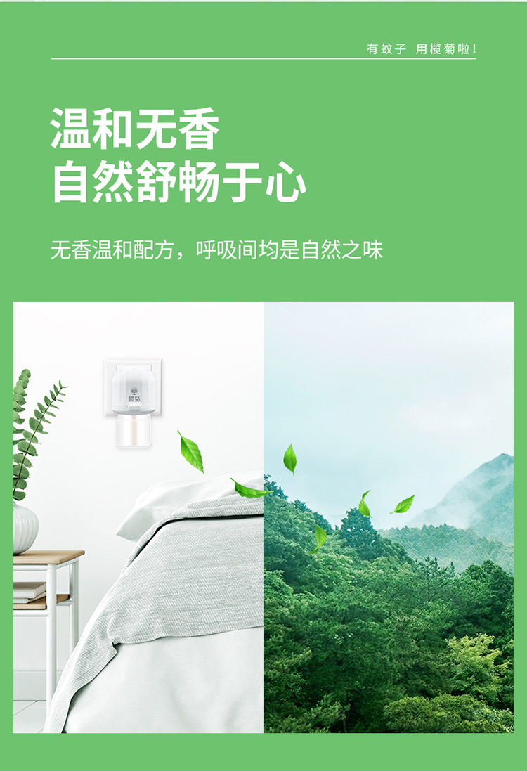 榄菊33ml无香无味蚊香液4瓶+1直插器 盒 松石绿