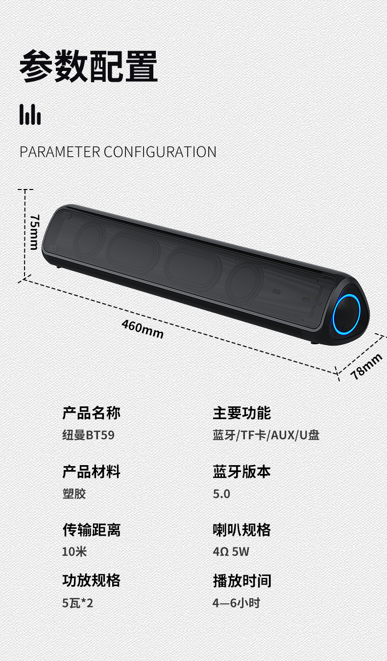 纽曼BT59蓝牙音箱电脑音响便携式家用桌面重低音炮多媒体台式机笔记本迷你电竞游戏无线有线两用小音箱 个 黑色
