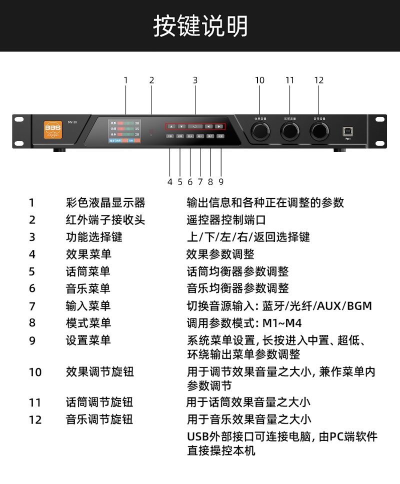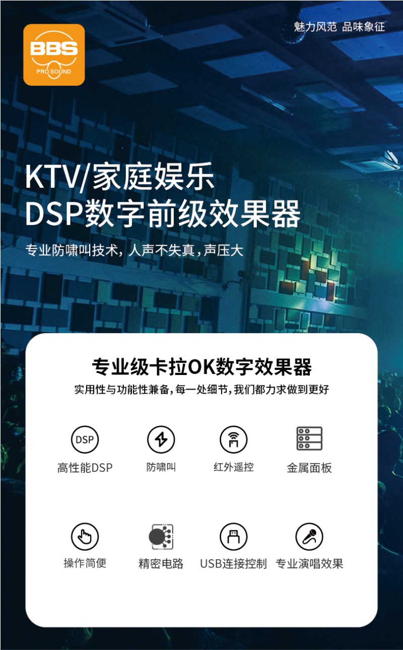 BBS KTV、家庭卡拉OK、教学会议室、舞台演出防啸叫DSP数字前级效果器 MV-30 台 曜石黑
