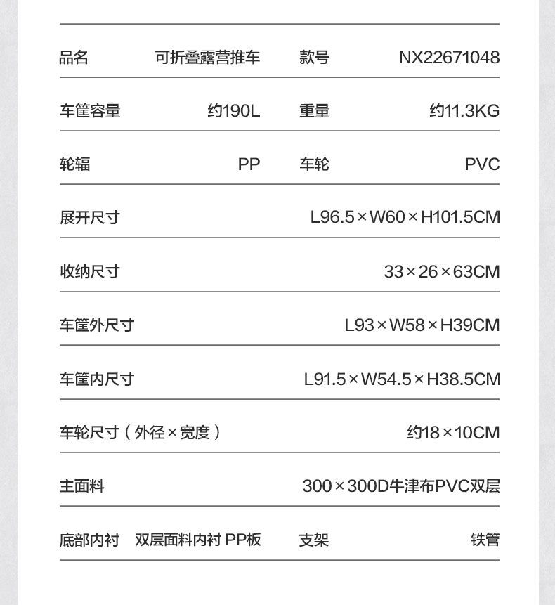 牧高笛(MOBIGARDEN)户外露营大容量带刹车折叠拖车NX22671048 曜石黑