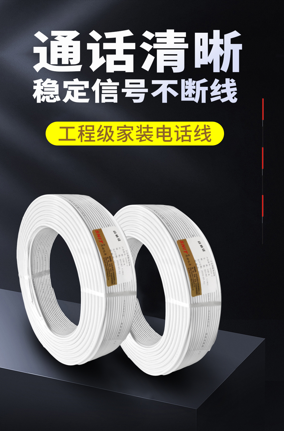 思诺亿舟(SNIT)SN-TL100-2C 白色2芯电话线 单股纯铜电话语音跳线 座机传真机电话延长连接线 100米 盘 白色