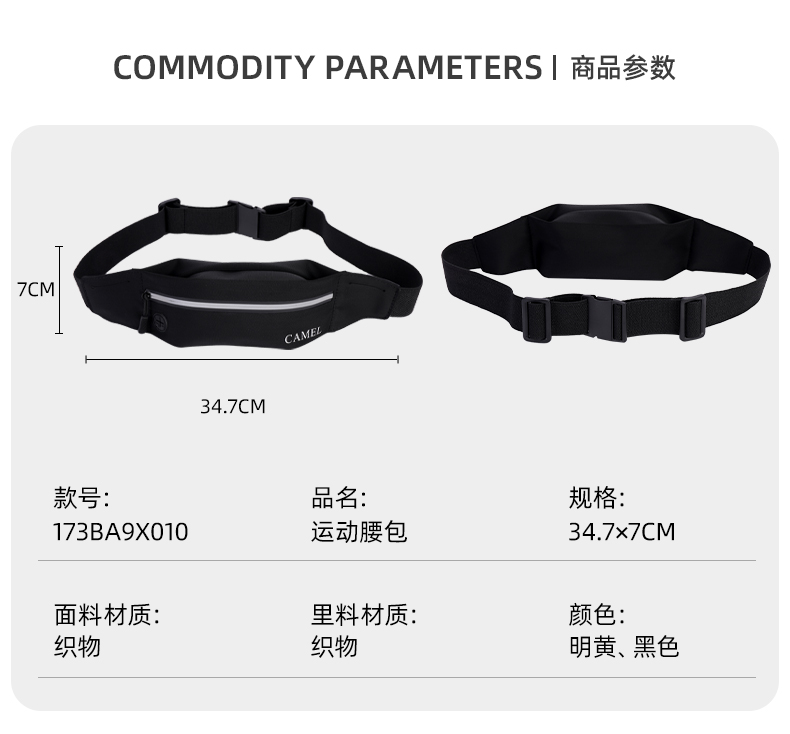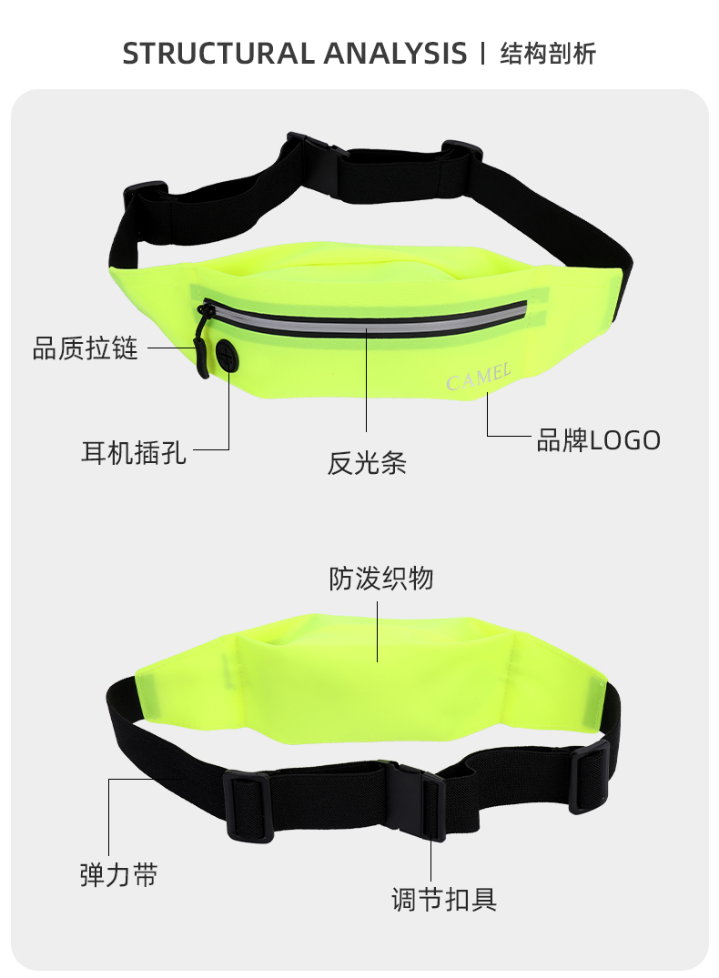 骆驼(CAMEL) 跑步手机袋男女腰包情侣款运动包轻薄隐形腰包跑步装备 173BA9X010 个 明黄