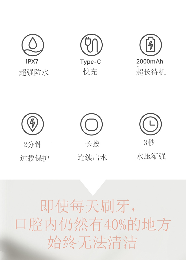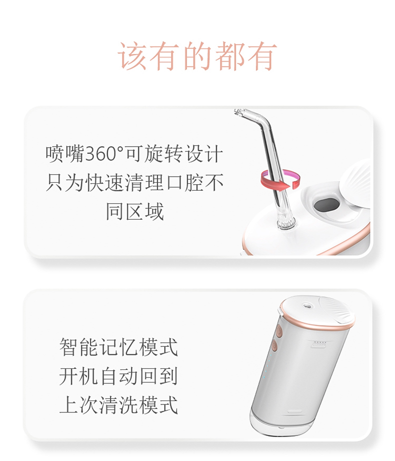 索哈曼(SOHOMAN) N1冲牙器智能洗牙器水牙线家用便携清洁器口腔冲洗器美牙仪 N1/个 粉色