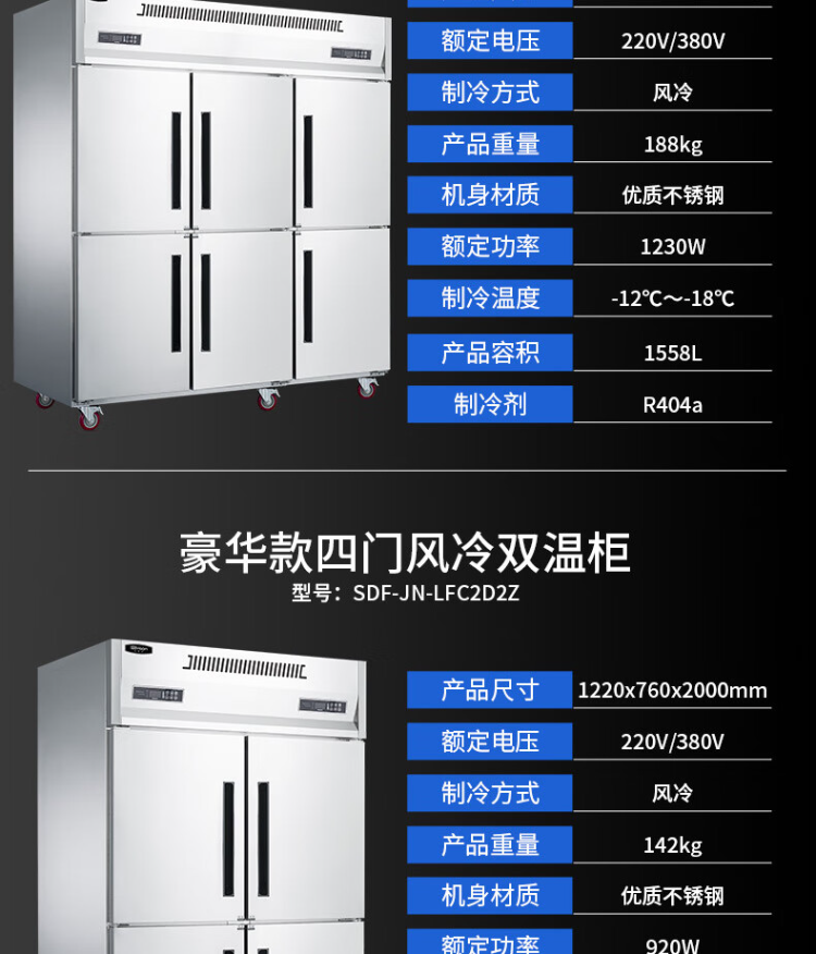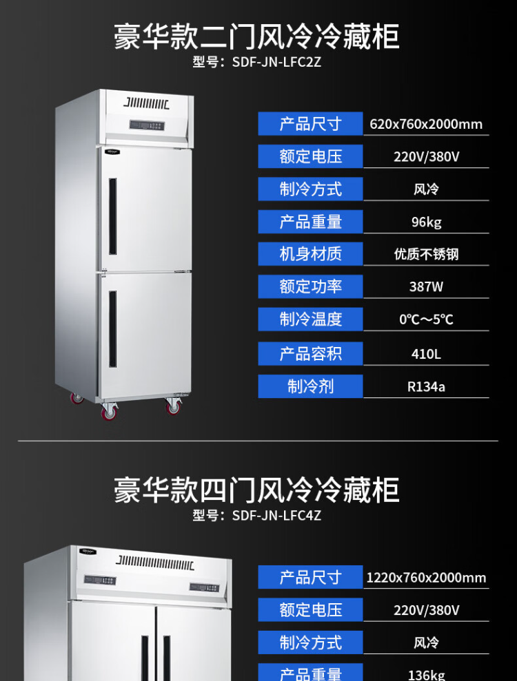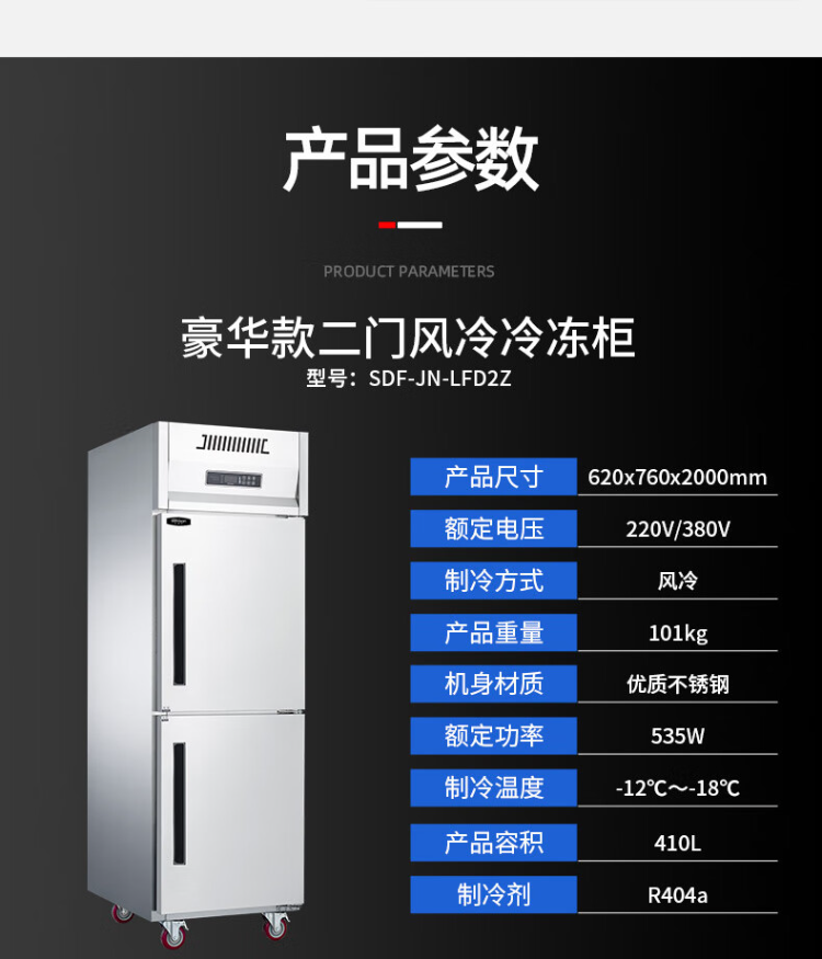 史蒂芬(stevison)SDF-JN-LFC2Z 普通款二门风冷冷藏柜 保鲜柜冷藏冷冻双温立式不锈钢厨房冰箱(单位:台) 不锈钢色