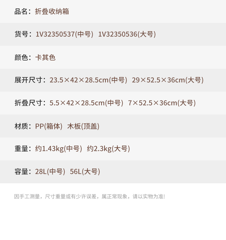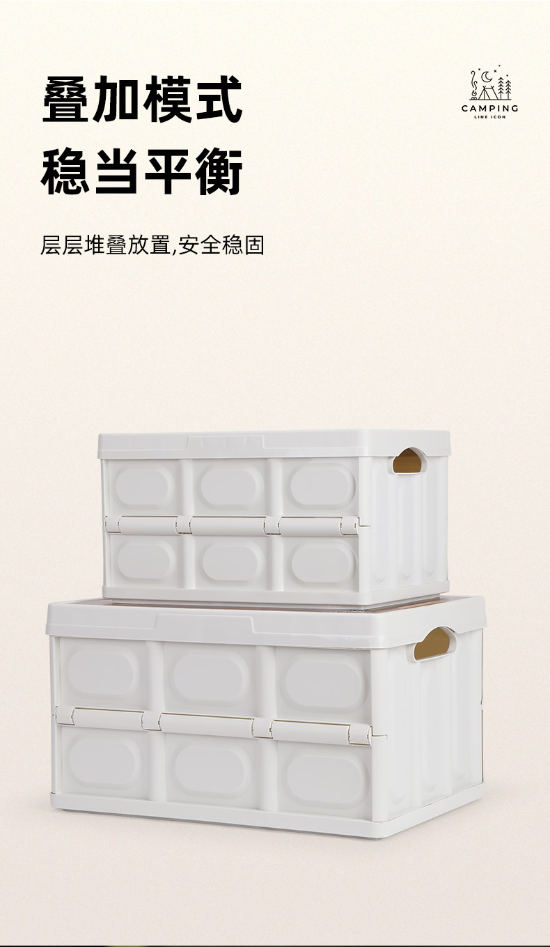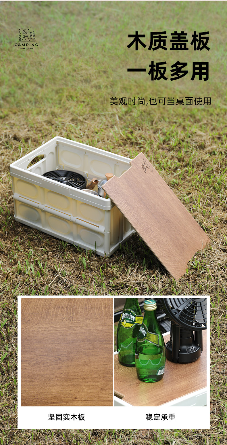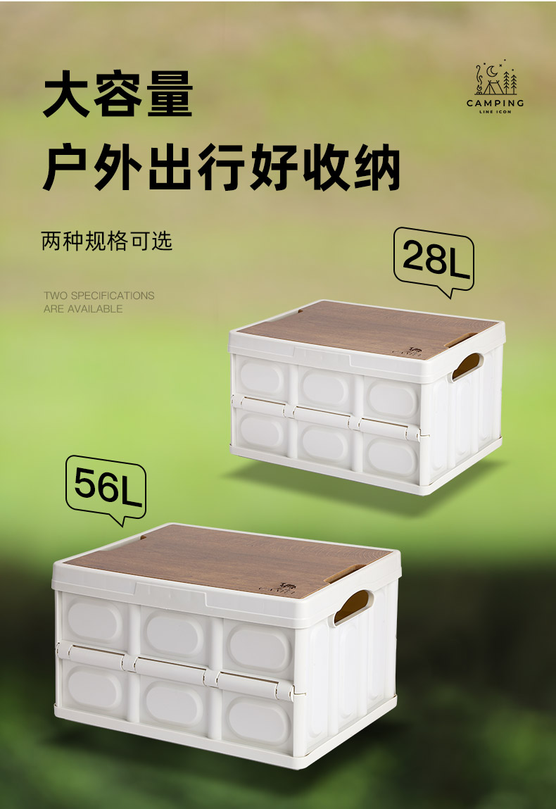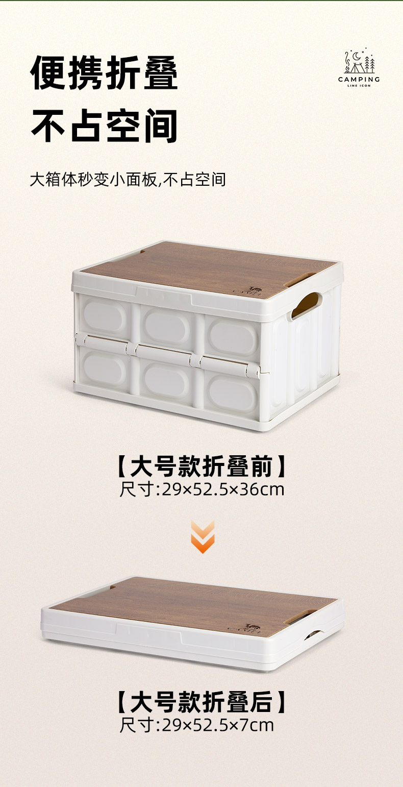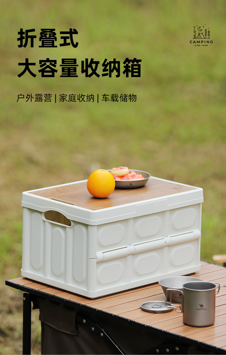 骆驼 户外露营收纳箱折叠整理储物箱子野营桌装备用品便携杂物包袋 1V32350537 个28L 卡其色