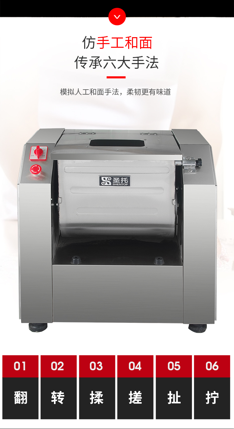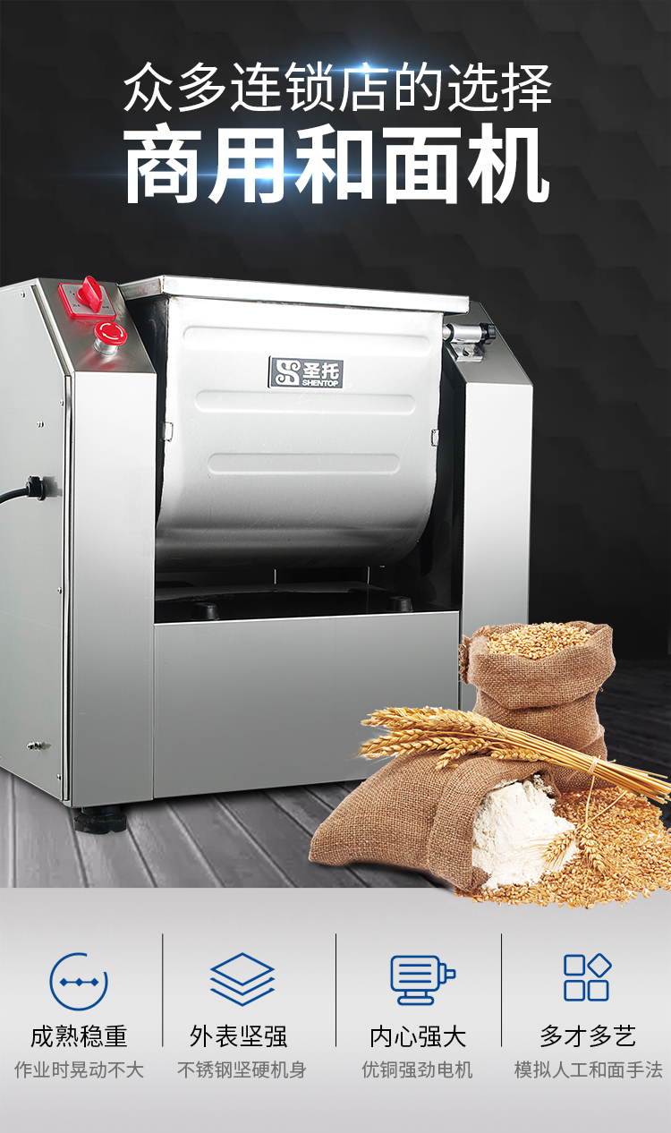 圣托(Shentop)电动和面机商用15升 全自动大型面粉搅拌机 包子馒头揉面打面厨师机 STMS-M15(单位:台)) 不锈钢色