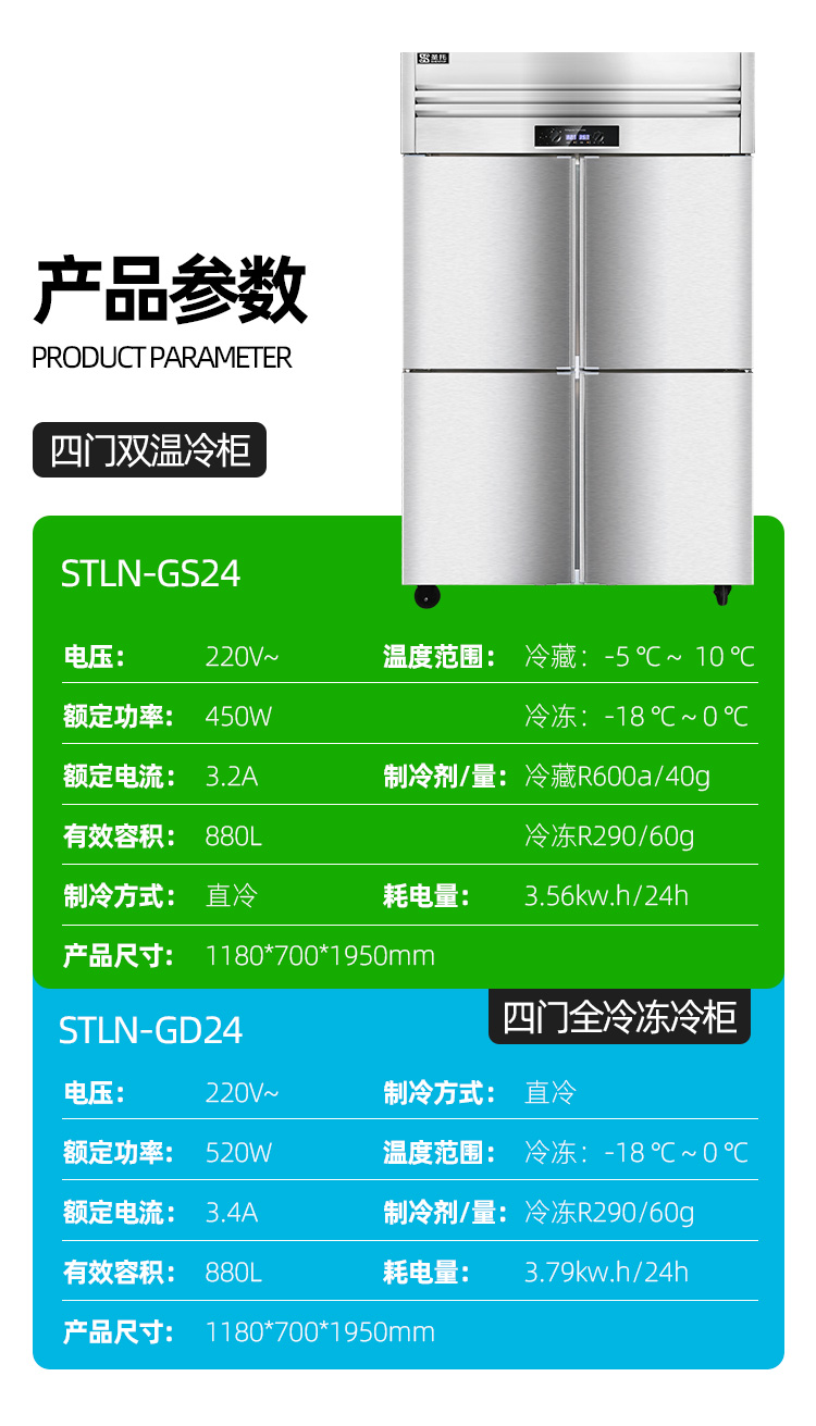 圣托(Shentop)不锈钢厨房冷藏柜商用 冷藏冷冻双温立式冷柜 四门冰柜商用大容量冰箱 STLN-GS24(单位:台) 不锈钢色