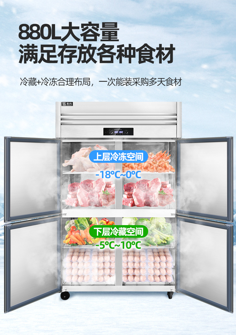 圣托(Shentop)冷藏冷冻双温立式冷柜 厨房冷藏柜保鲜展示柜 六门冰柜商用大型冰箱 STLN-GS36(单位:台) 不锈钢色