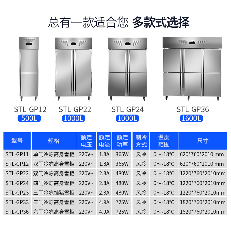 圣托(Shentop)不锈钢风冷冰柜无霜 四门冷冻食品展示柜 1000升饭店商用厨房冷柜 STL-GP24(单位:台)) 不锈钢色