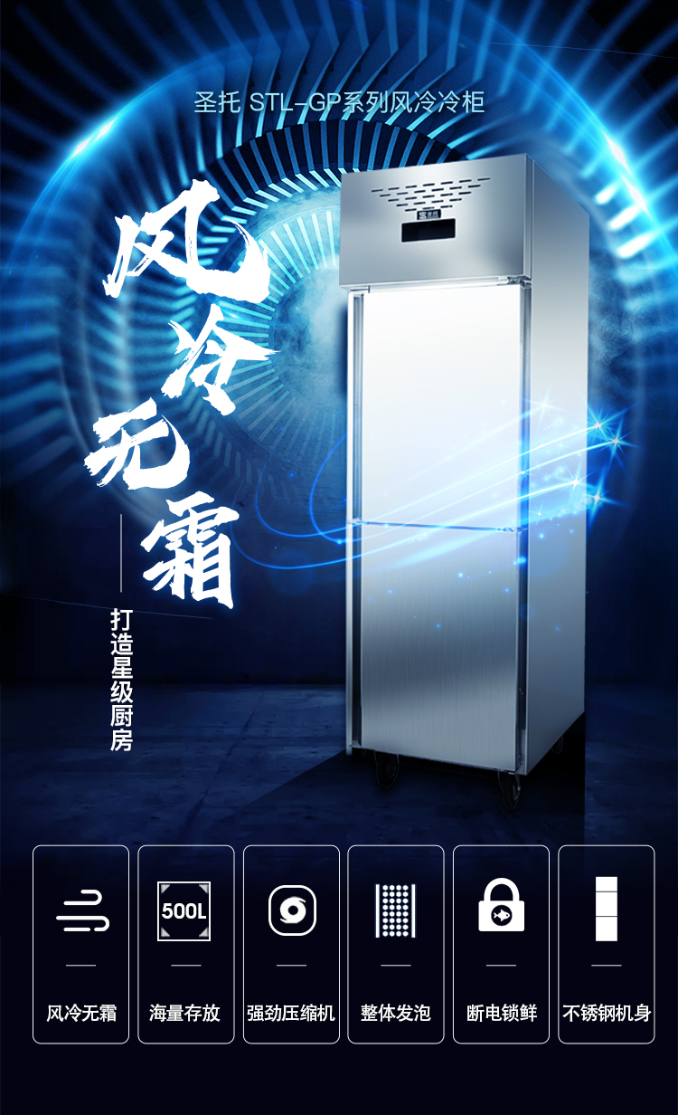 圣托(Shentop)大容量冷冻冰柜双开门 风冷保鲜柜立式商用 学校饭堂大型保鲜冰箱 STL-GP22(单位:台)) 不锈钢色