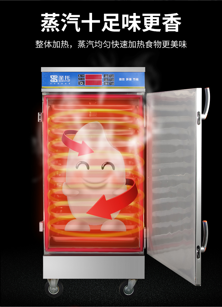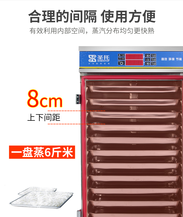 圣托(Shentop)全自动蒸饭柜商用 酒店饭店食堂蒸柜 12盘单门电热蒸饭机 STZ-D12(单位:台) 不锈钢色