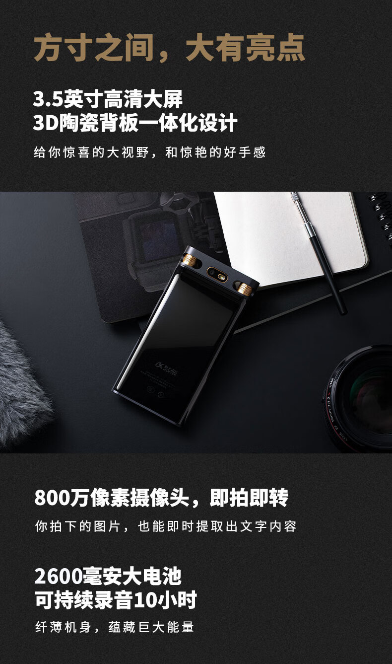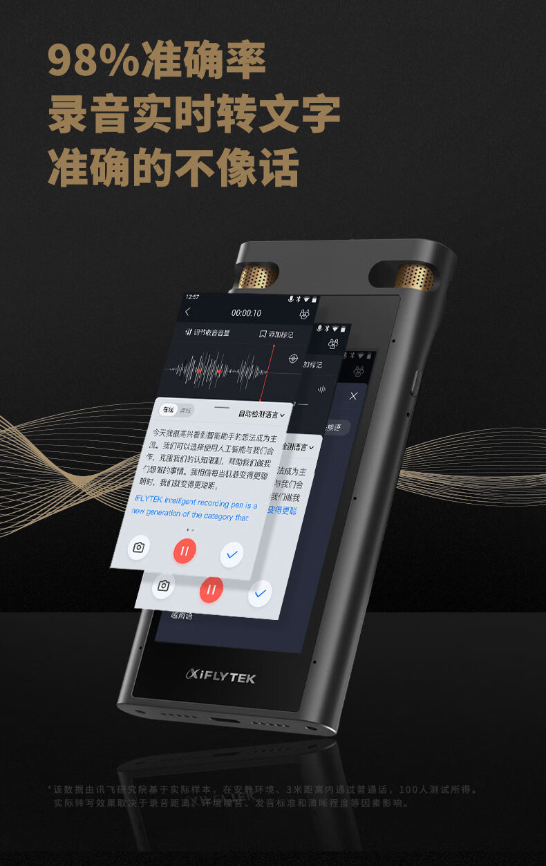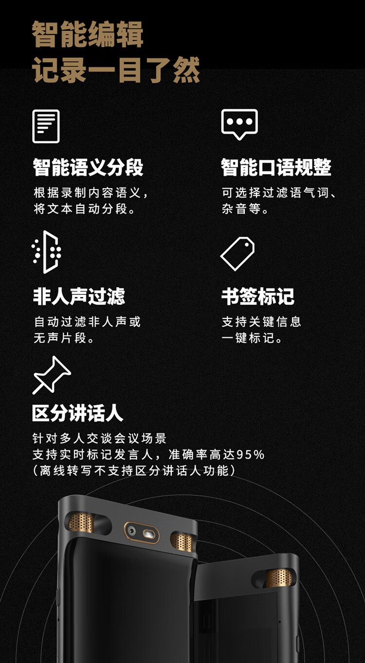 科大讯飞智能录音笔SR702 32G+20G云储存 录音转文字 视频实时翻译 OCR识别 离线转写 免费转写 星火大模型 台 黑色