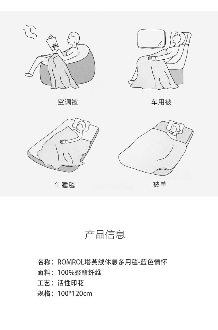 塔芙绒休息多用毯100*120(条) 水蓝色