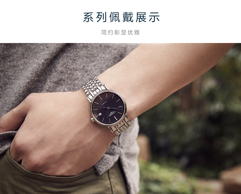 浪琴(Longines)瑞士手表 时尚系列 机械钢带男表L4.921.4.92.6(单位:块) 蓝色