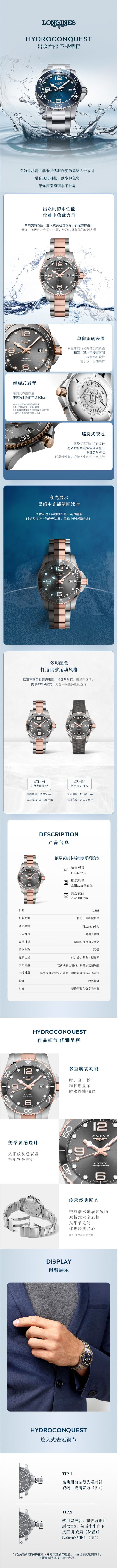 浪琴Longines 康卡斯潜水系列机械男士腕表 L3.782.3.78.7(单位:块) 灰色