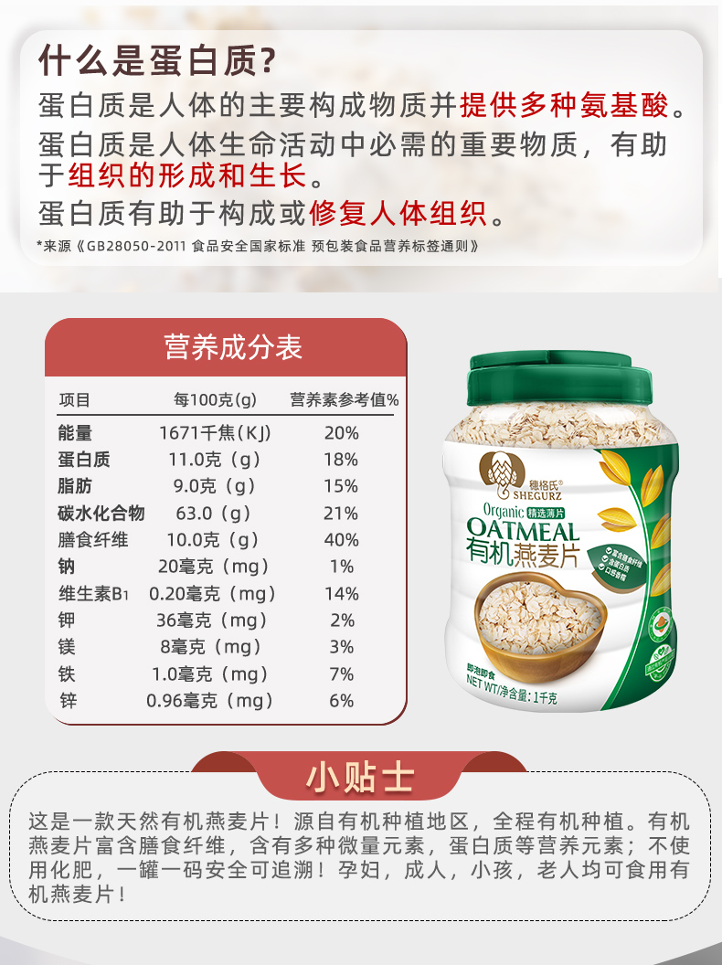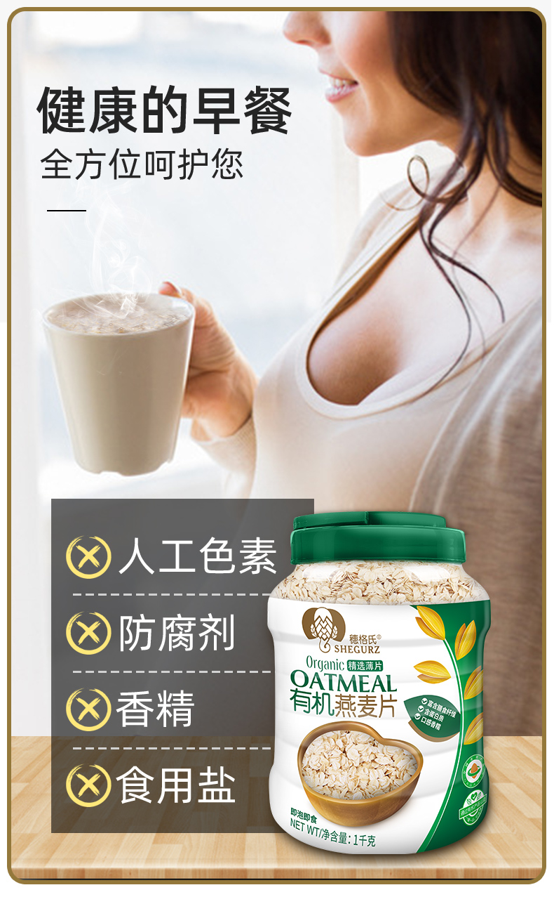 穗格氏有机燕麦片 1000g 单位:罐 雾雨绿