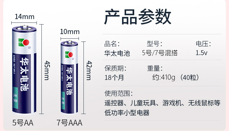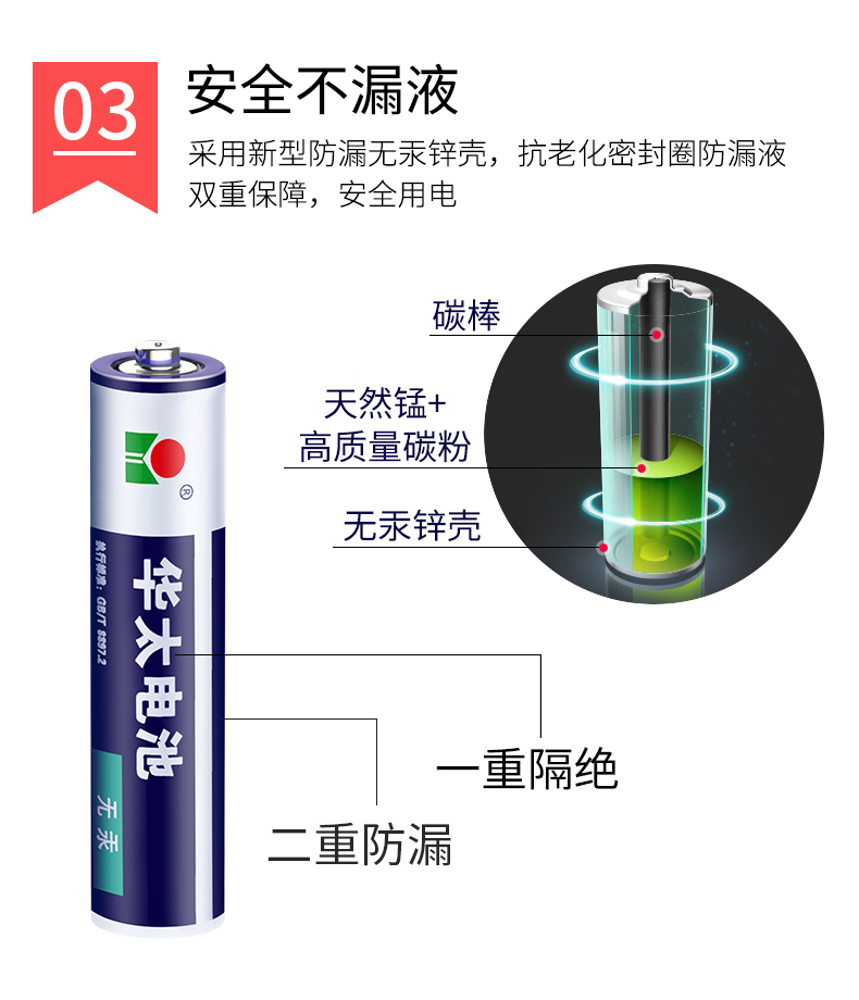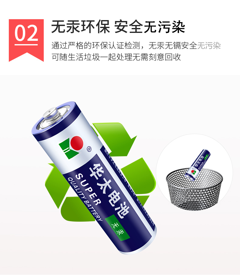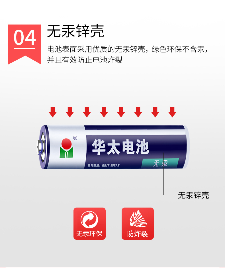 华太电池碳性电池 适用于:儿童玩具/遥控器/挂钟/闹钟/计算器 蓝白