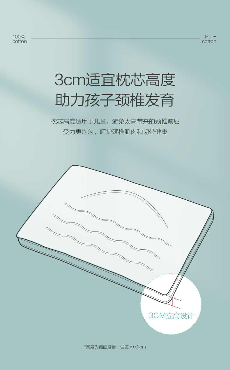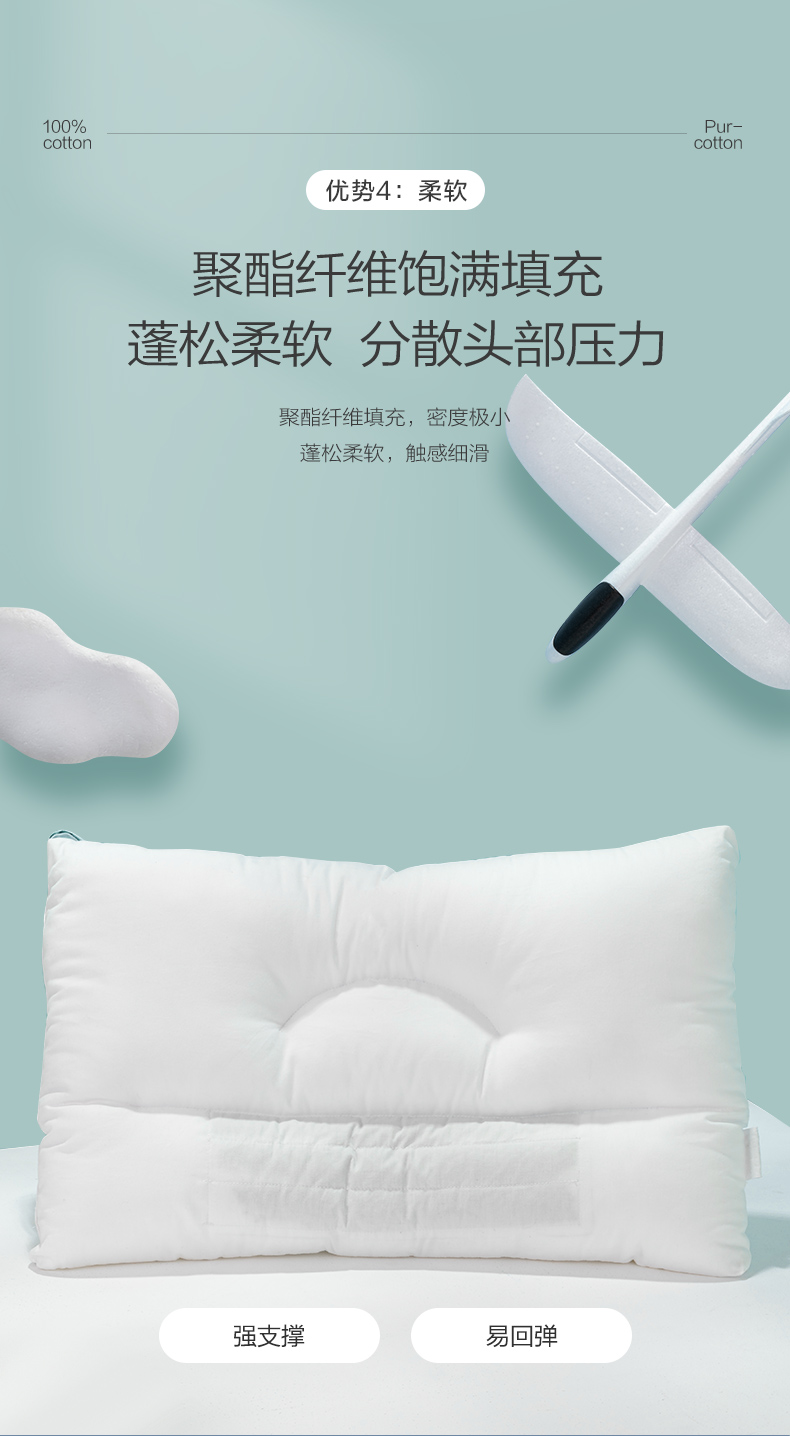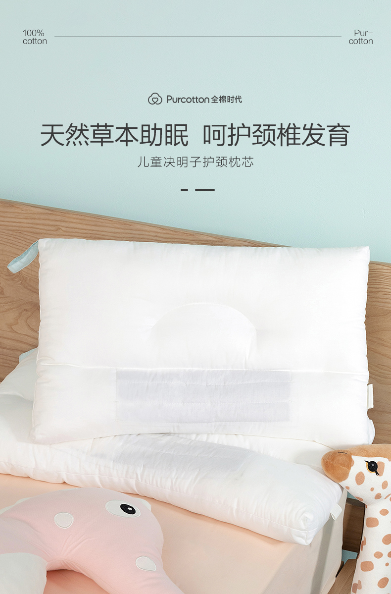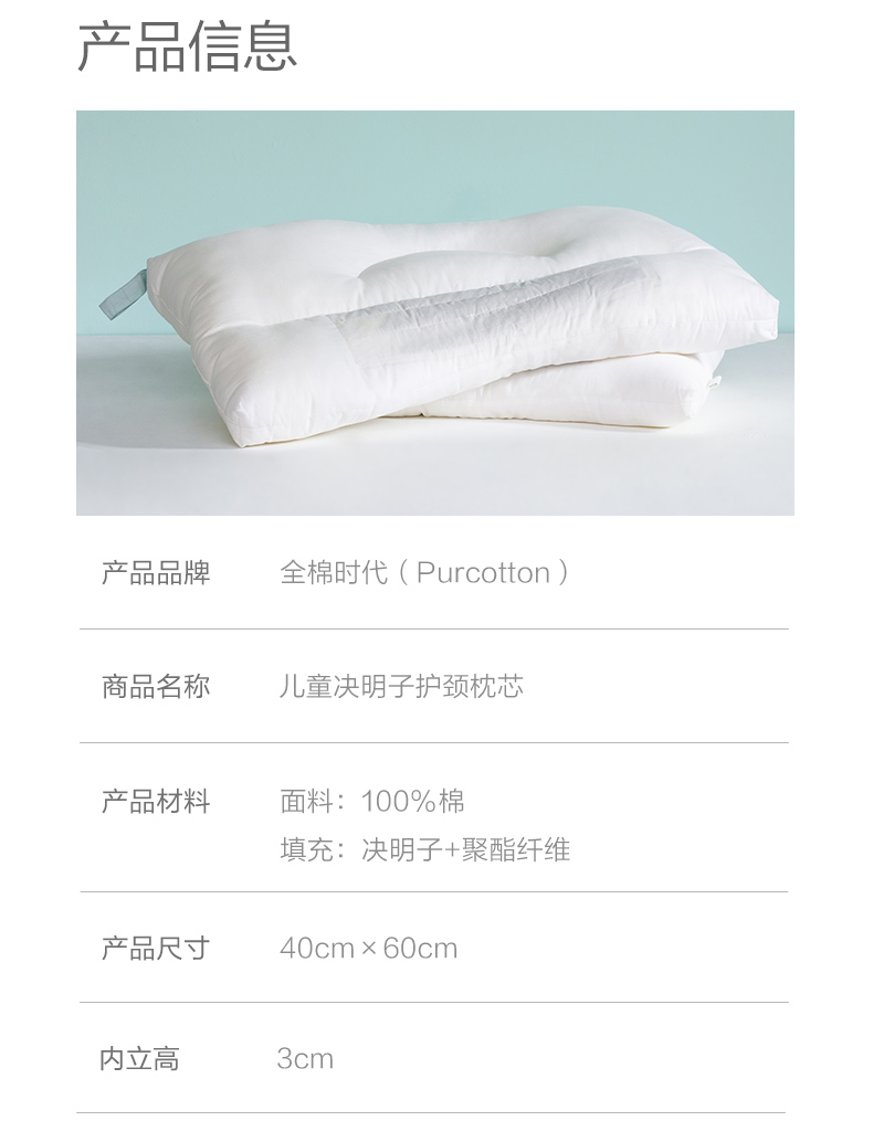 全棉时代儿童枕芯 40cm×60cm 儿童全棉决明子护颈枕 1件装 白色
