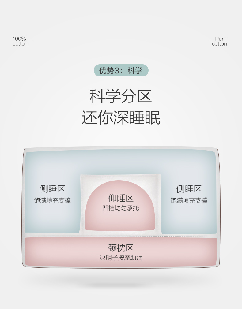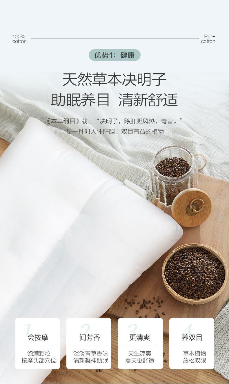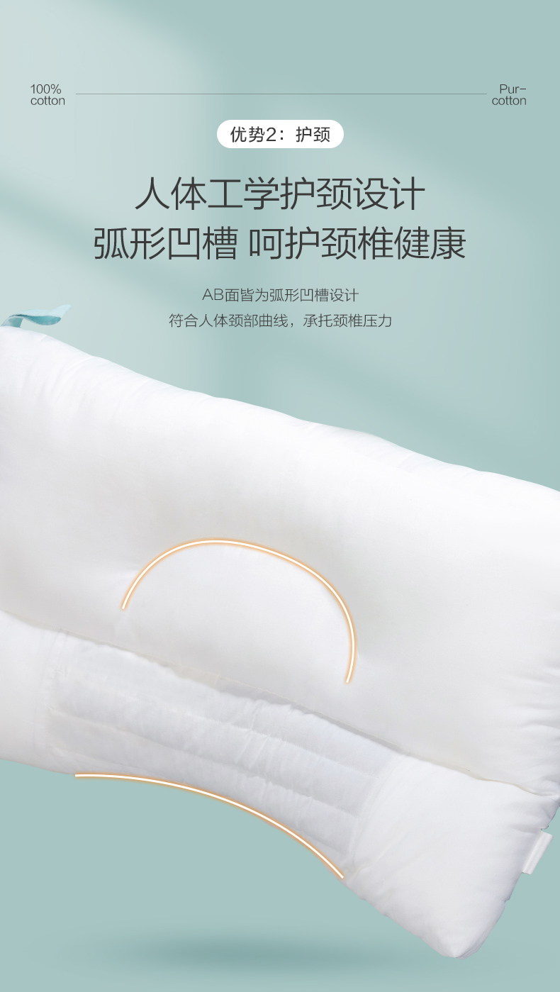 全棉时代儿童枕芯 40cm×60cm 儿童全棉决明子护颈枕 1件装 白色