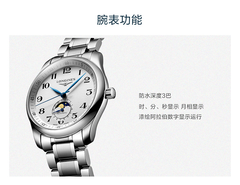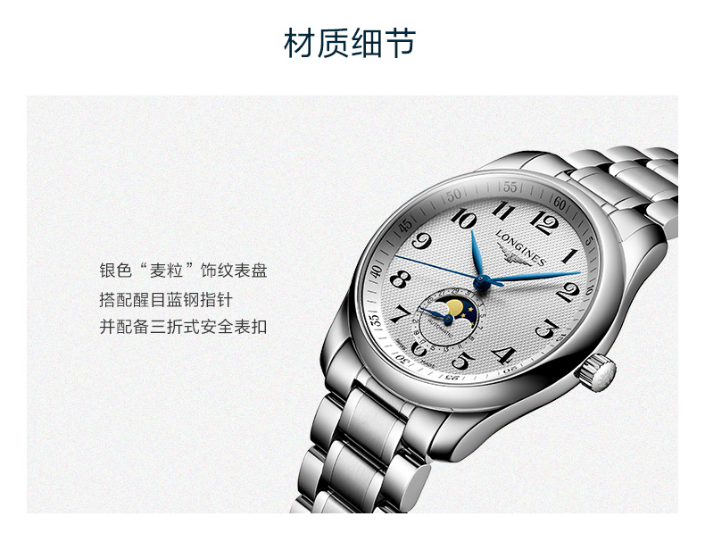 浪琴Longines 名匠系列月相机械手表男士腕表 L2.909.4.78.6 白色
