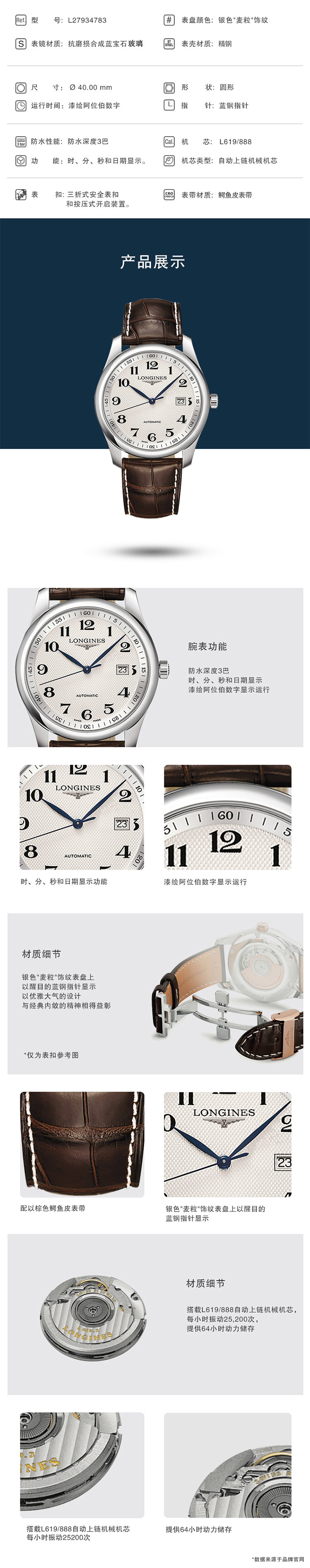 浪琴Longines 名匠系列机械手表男士腕表 L2.793.4.78.3 白色