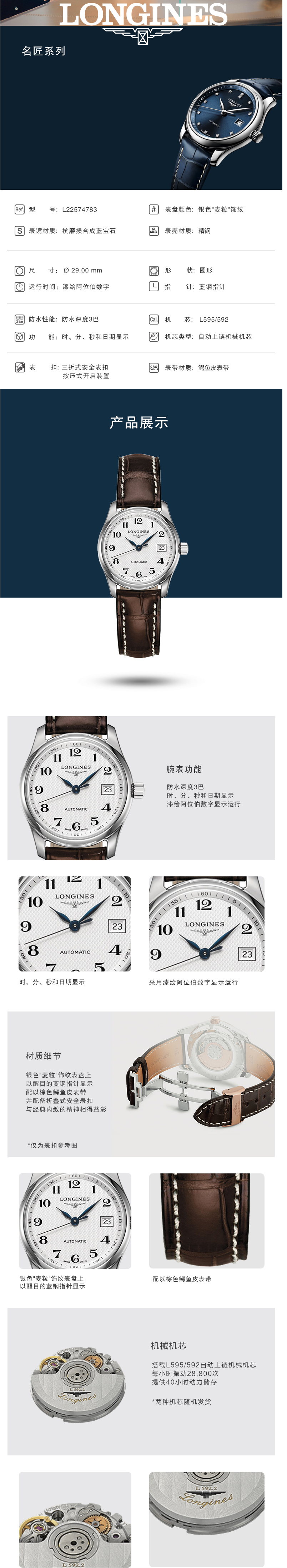 浪琴Longines 名匠系列机械手表女士手表 L2.257.4.78.3 白色