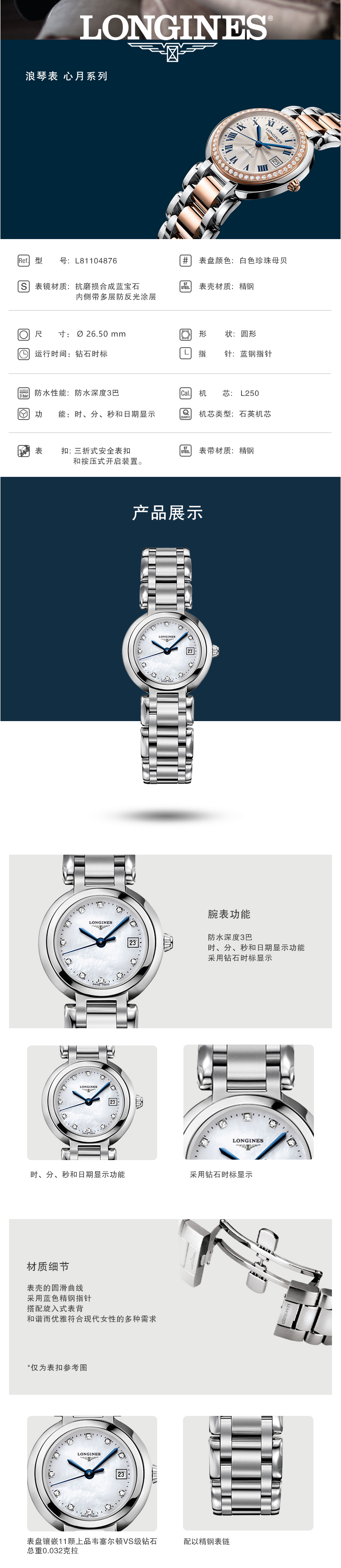 浪琴Longines 心月系列石英手表女士腕表 L8.110.4.87.6 白色