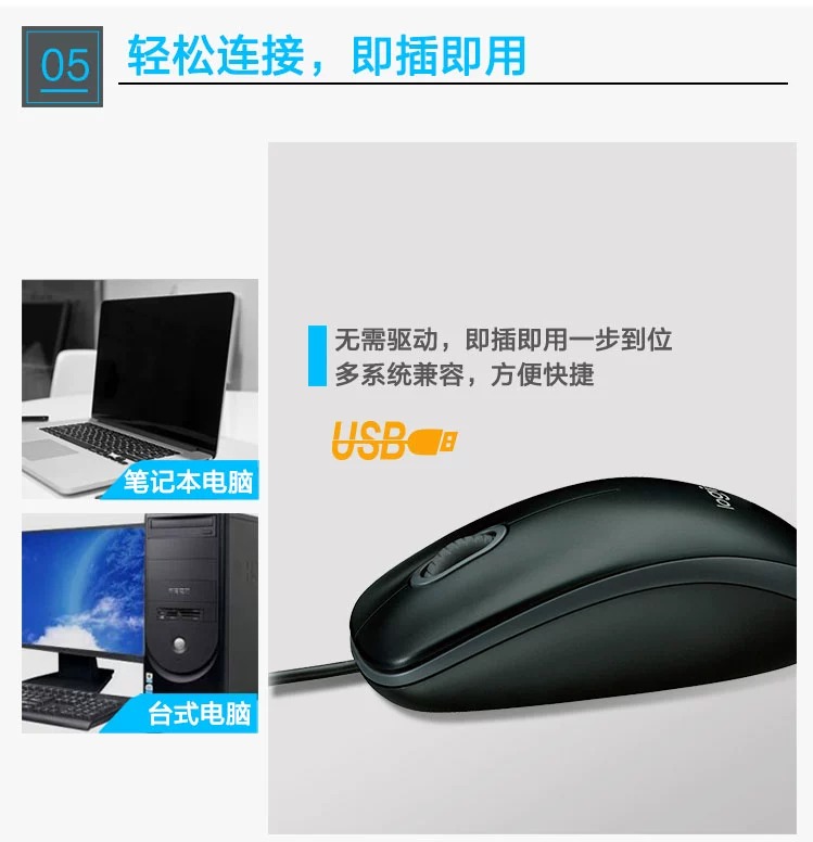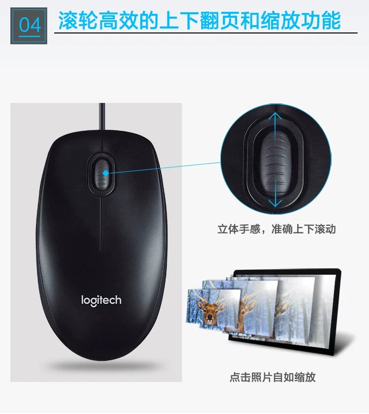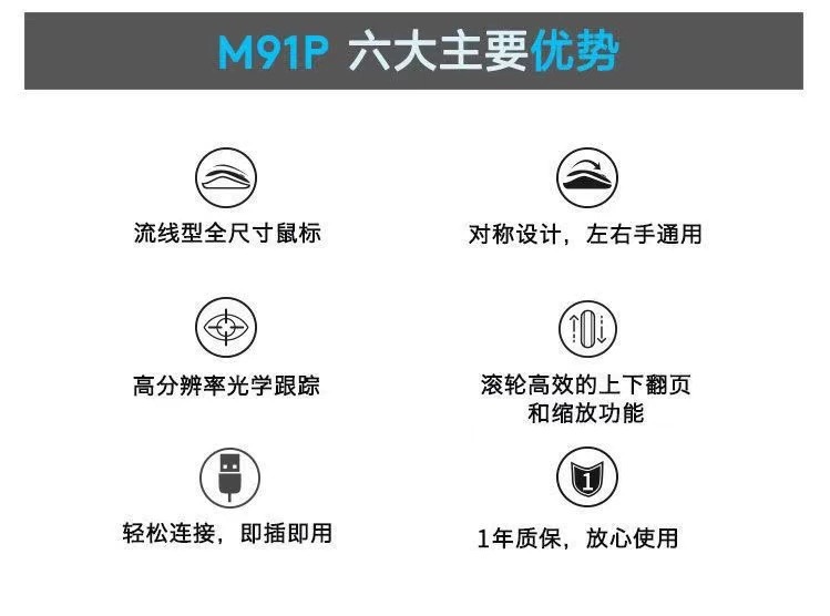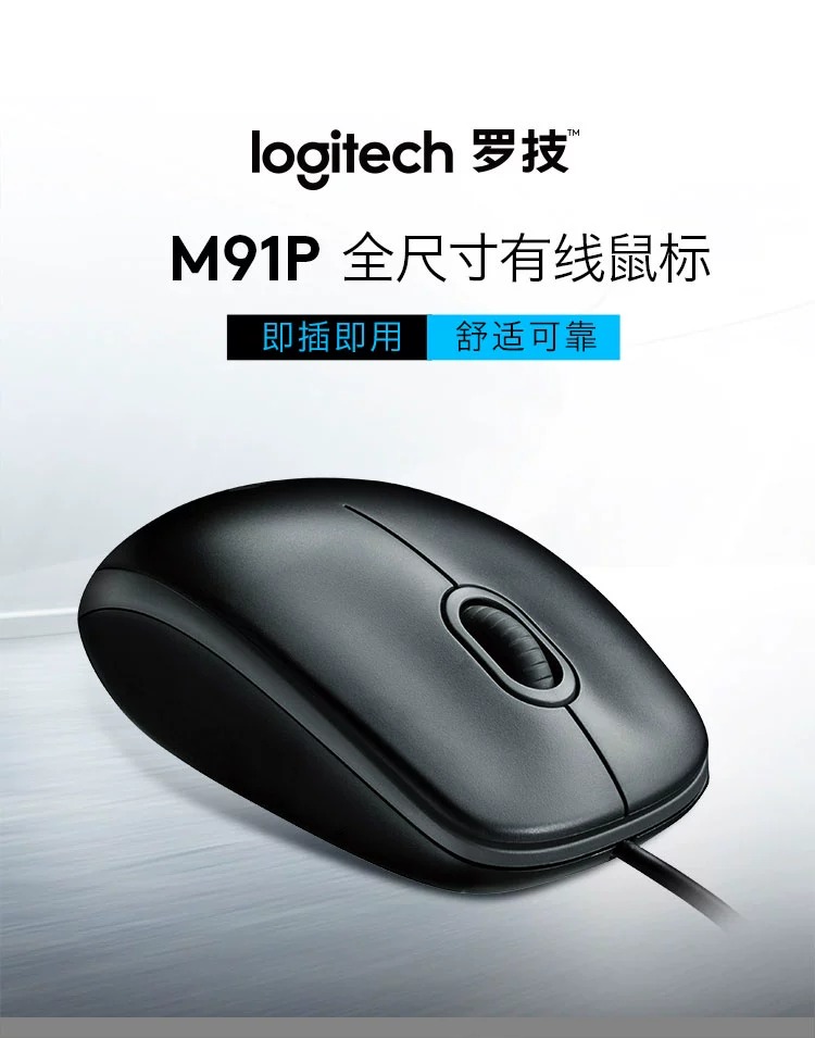 罗技有线鼠标M91P黑色 即插即用 舒适可靠 1只/黑色 曜石黑