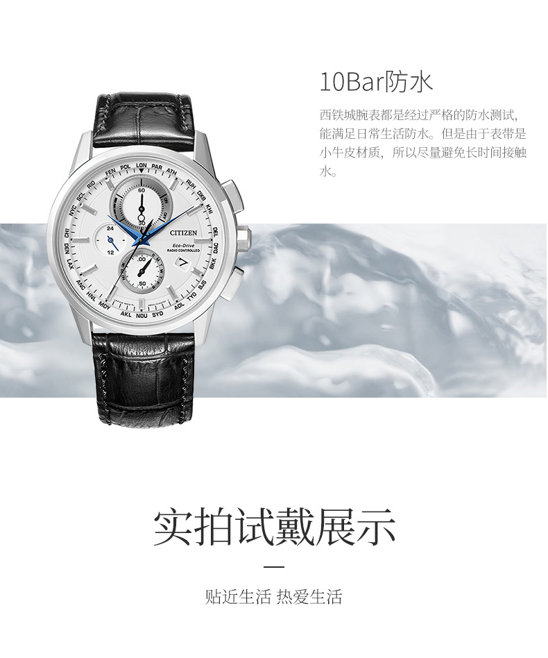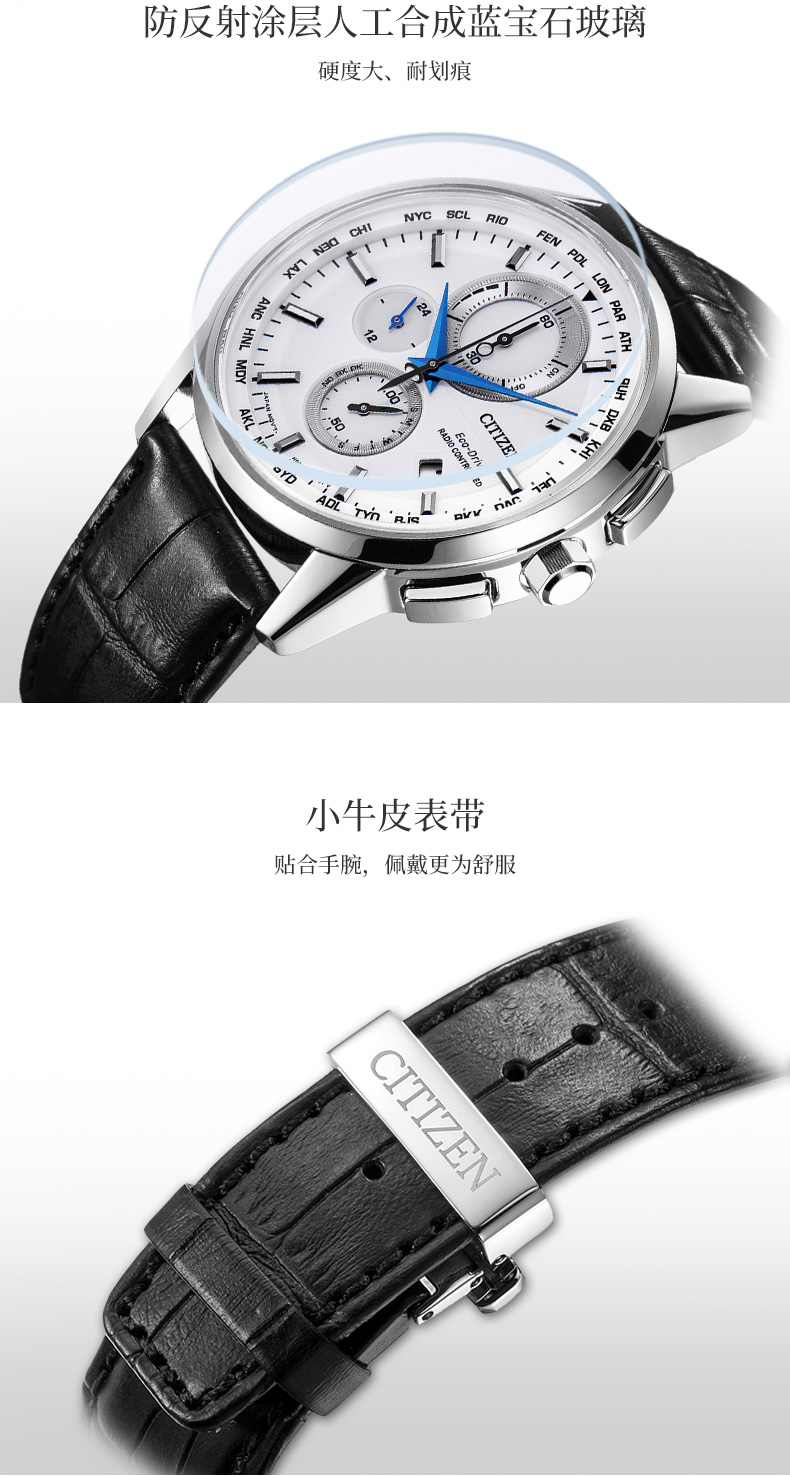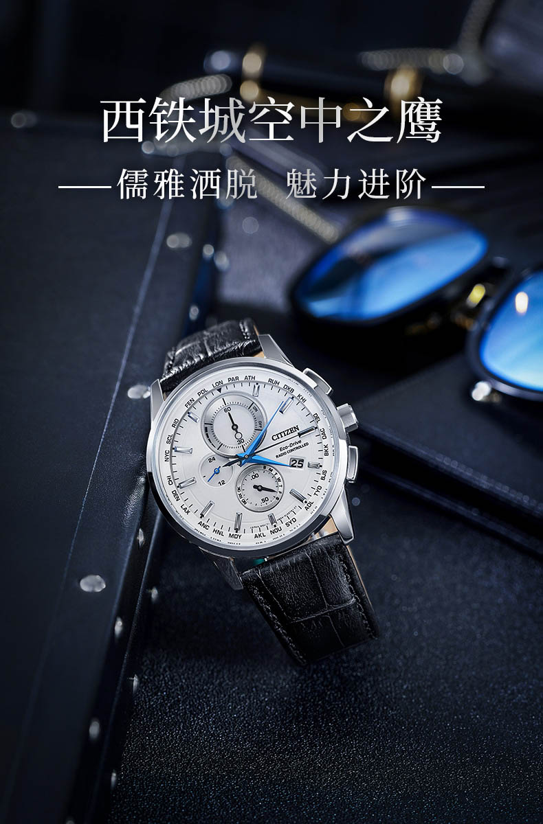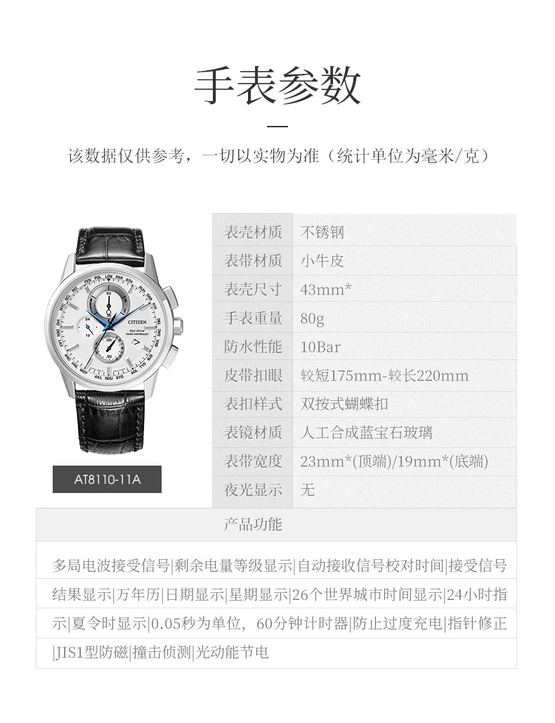 Citizen西铁城 光动能手表白盘皮带三眼防水男表 AT8110-11A 白色