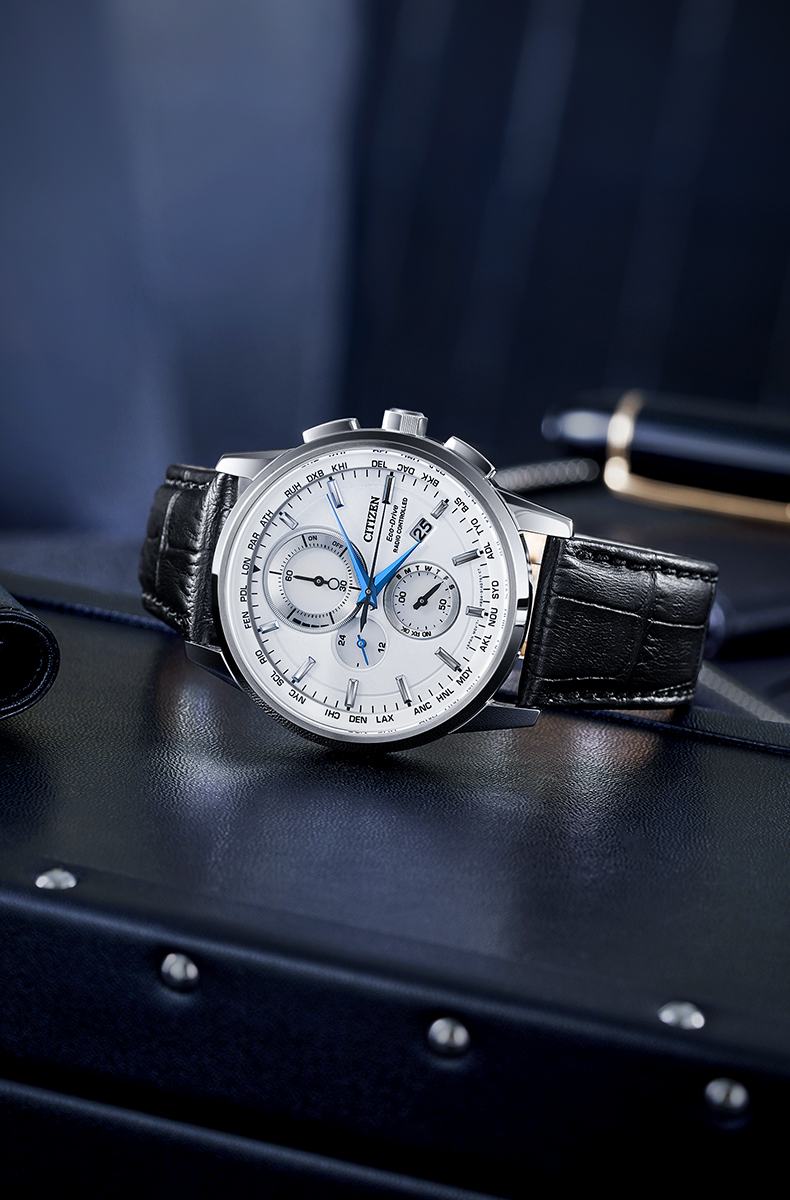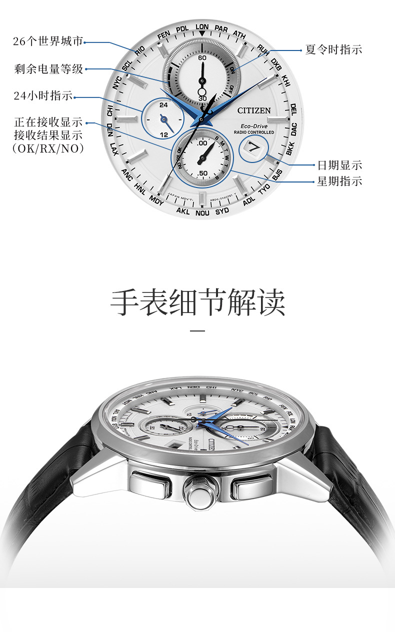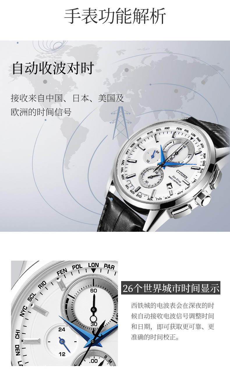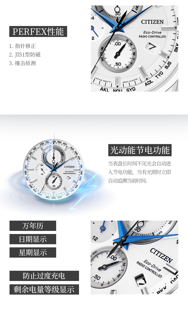 Citizen西铁城 光动能手表白盘皮带三眼防水男表 AT8110-11A 白色