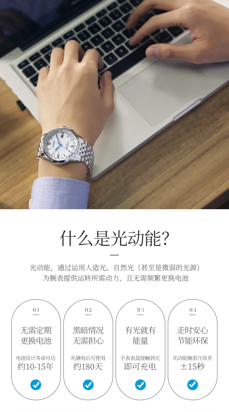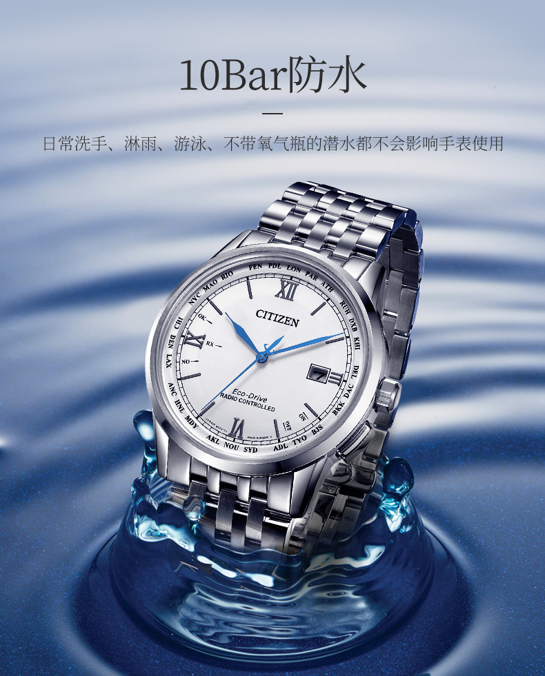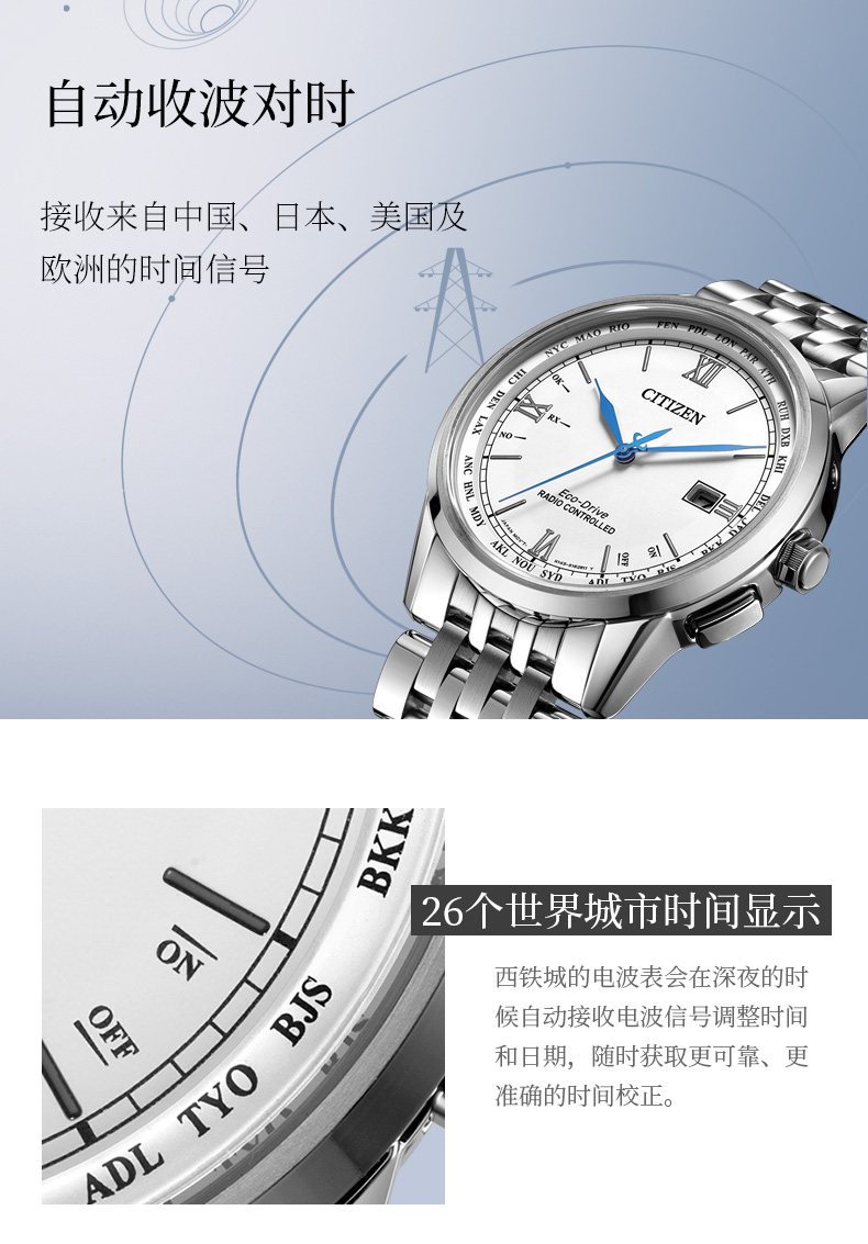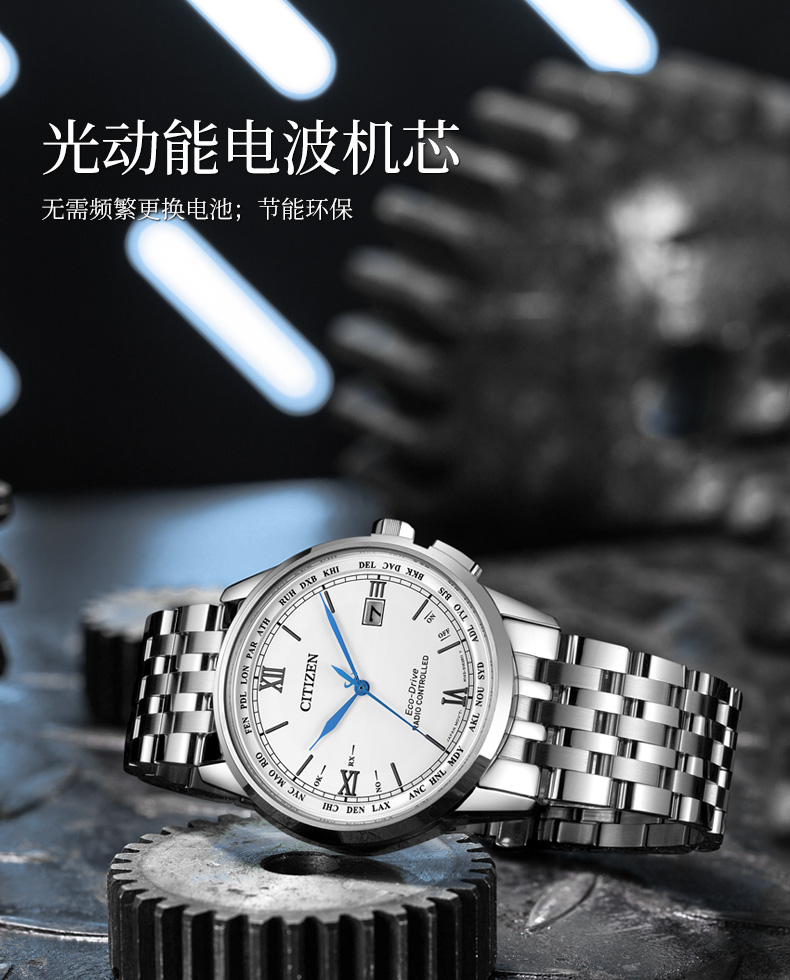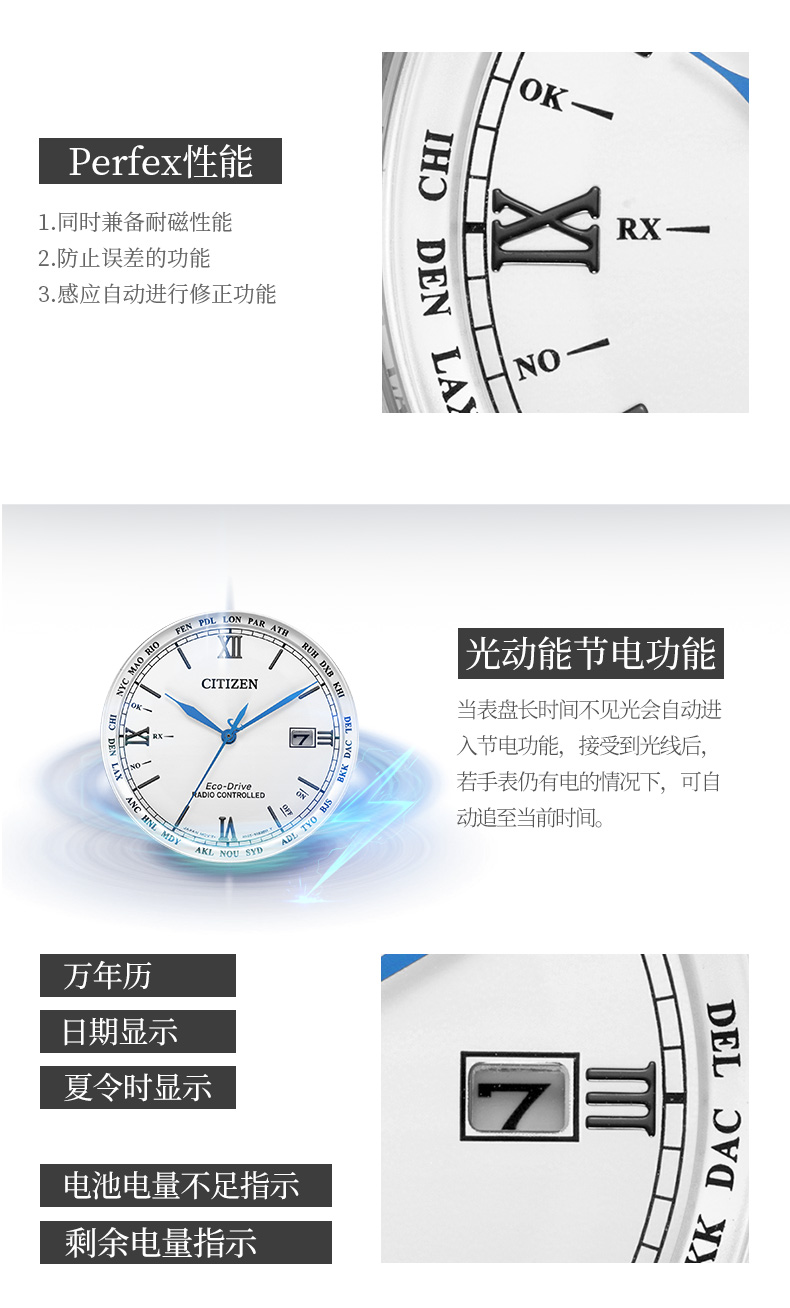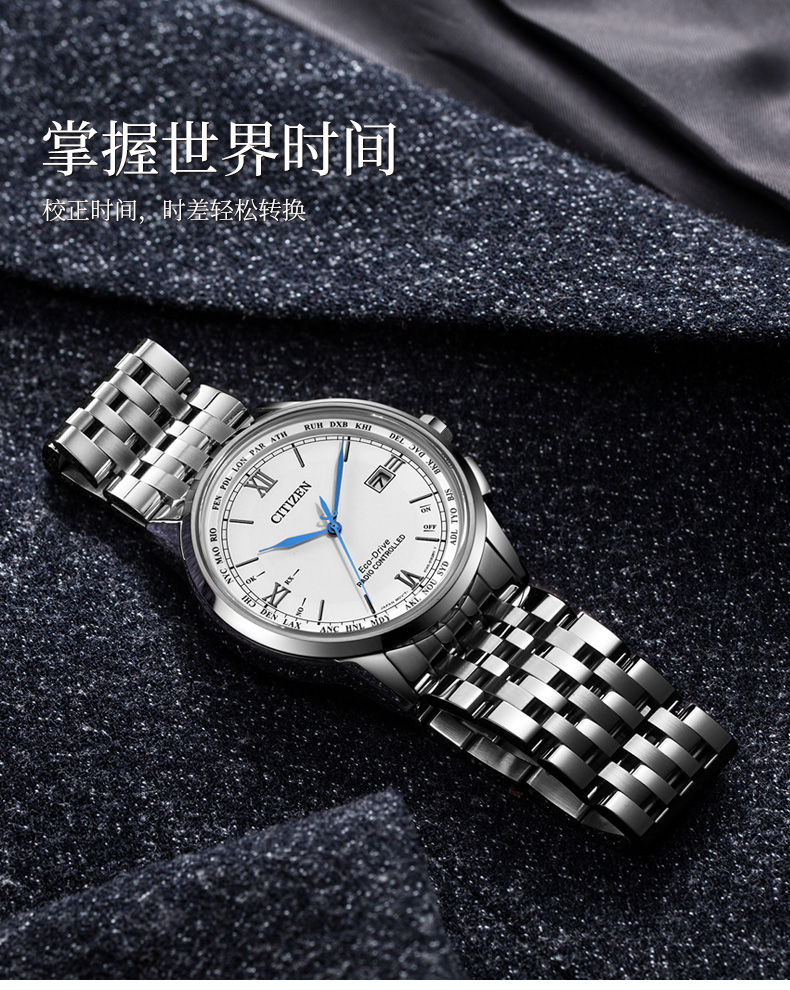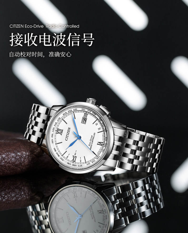 Citizen西铁城 光动能万年历蓝色指针白盘钢带休闲时尚男表 CB0150-89A 白色