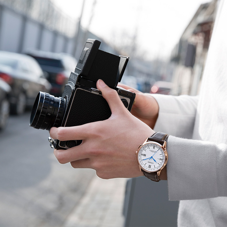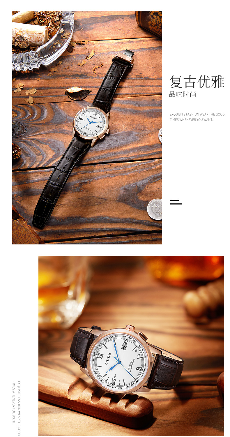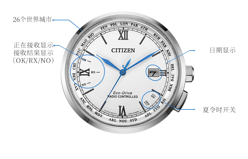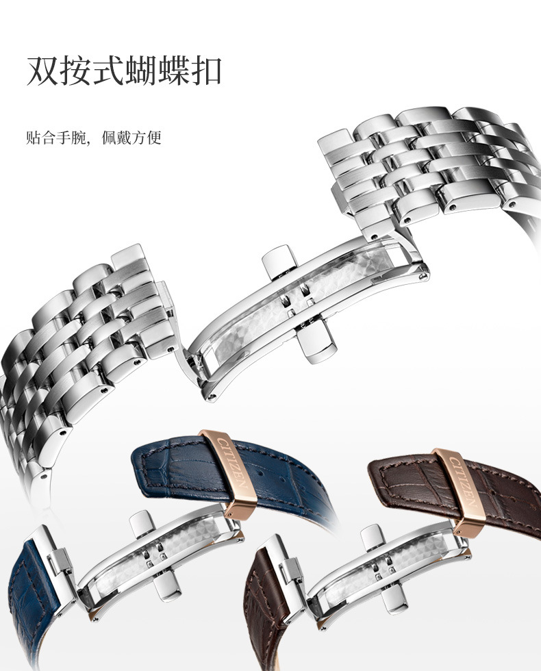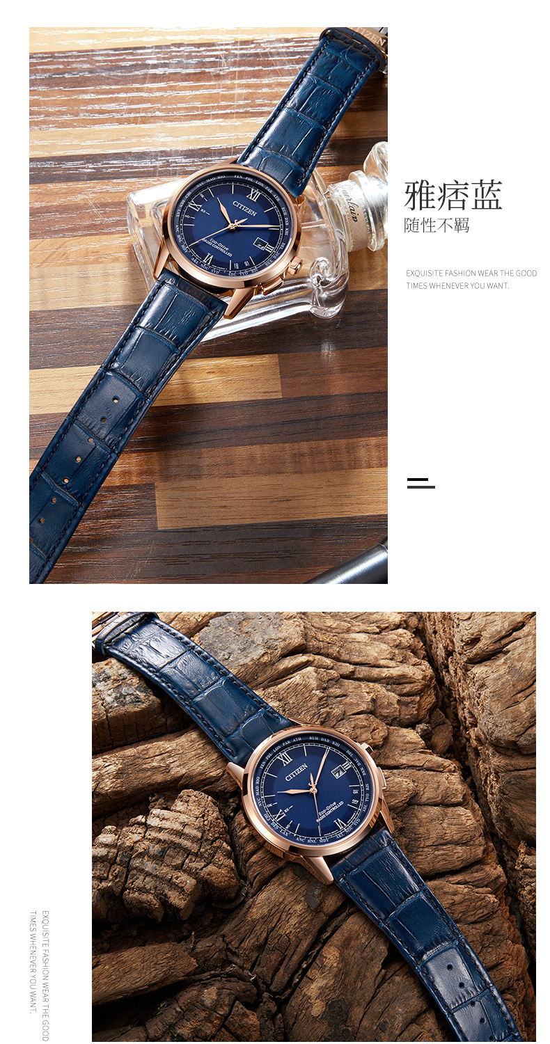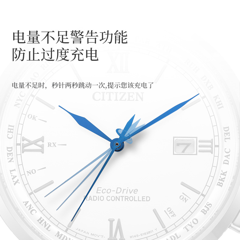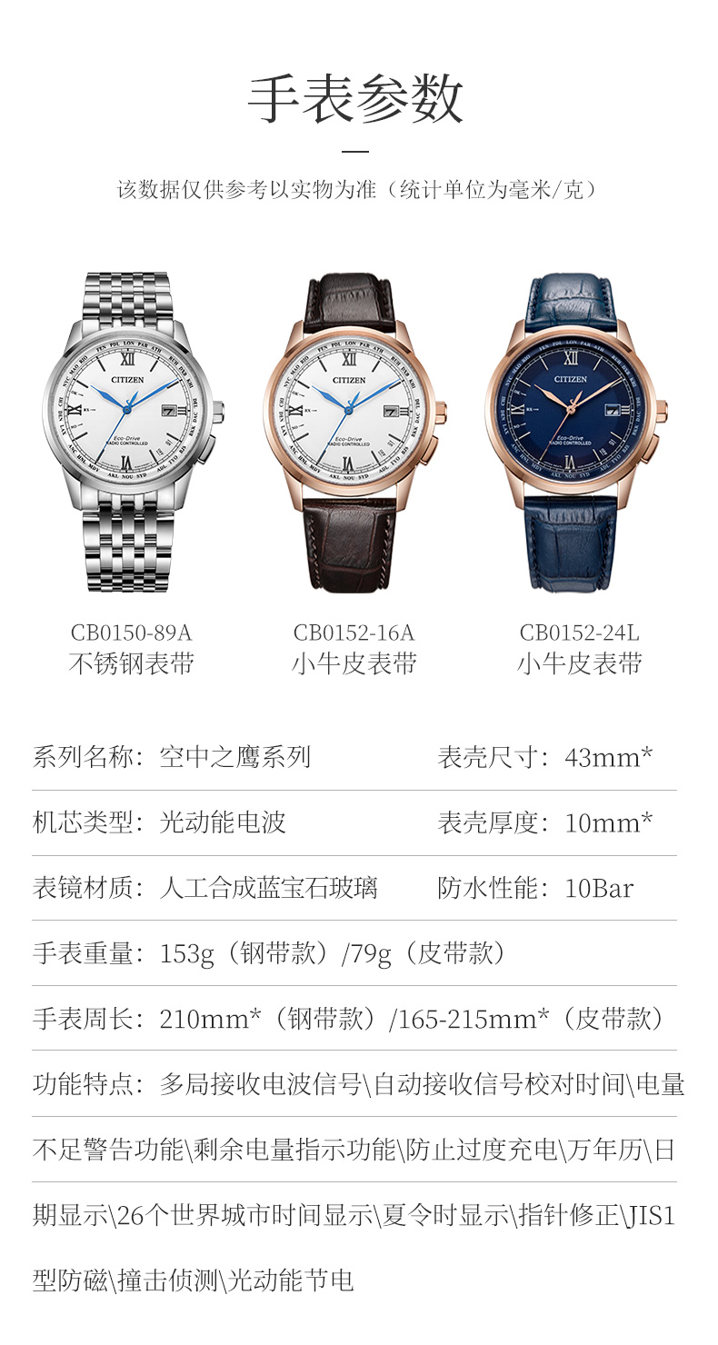 Citizen西铁城 光动能万年历蓝色指针白盘钢带休闲时尚男表 CB0150-89A 白色