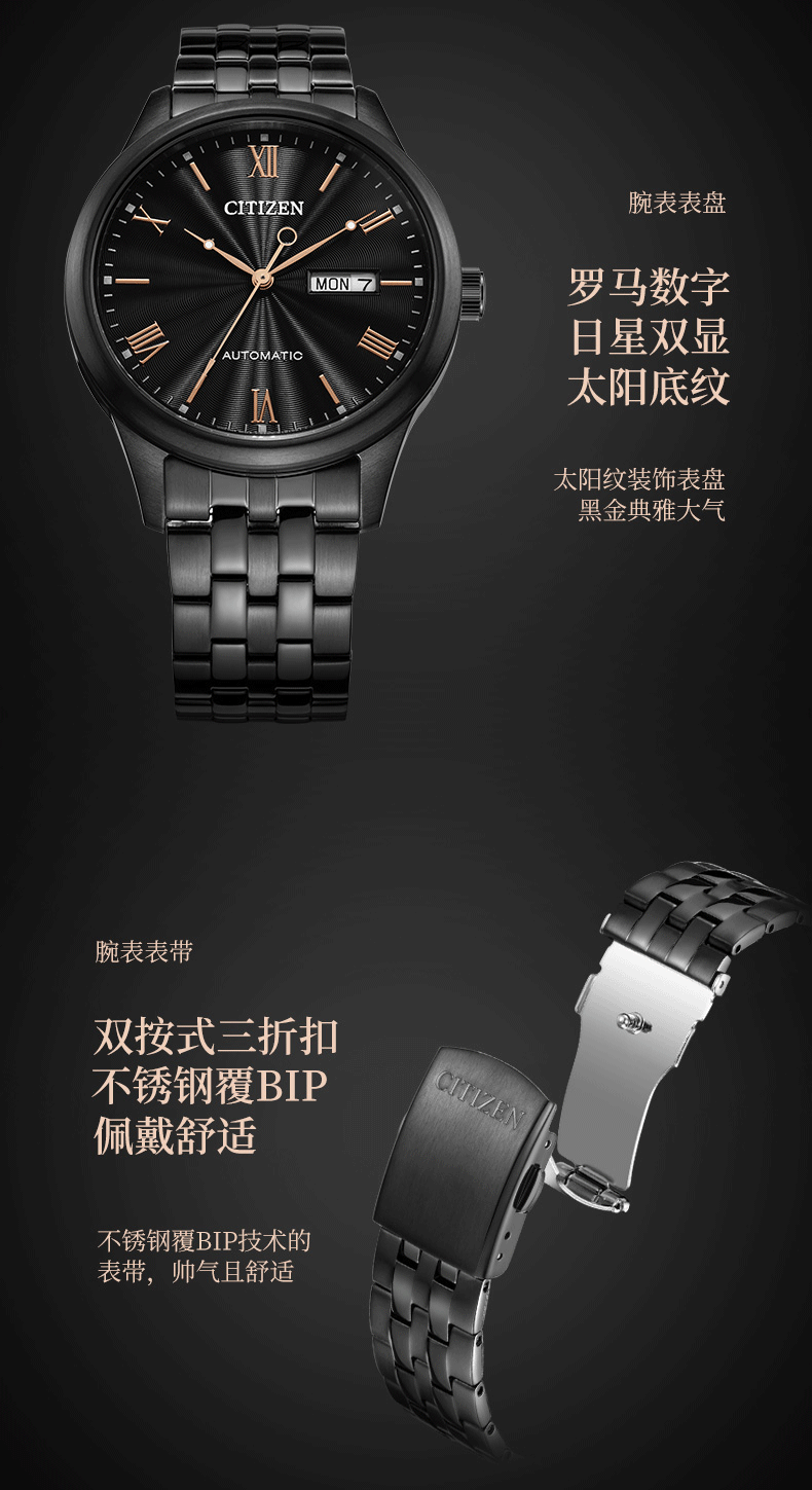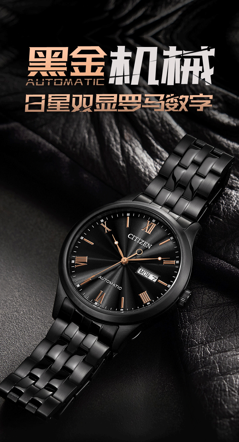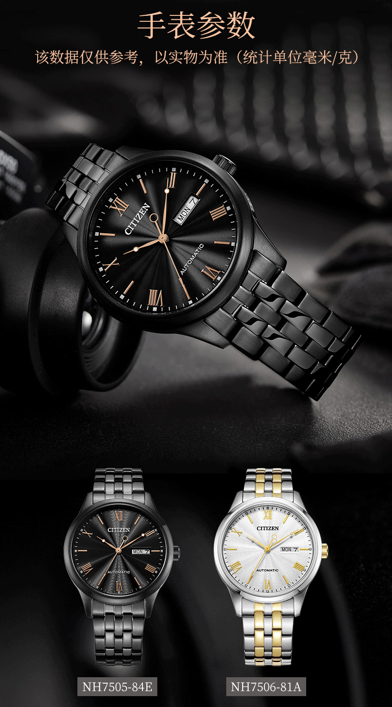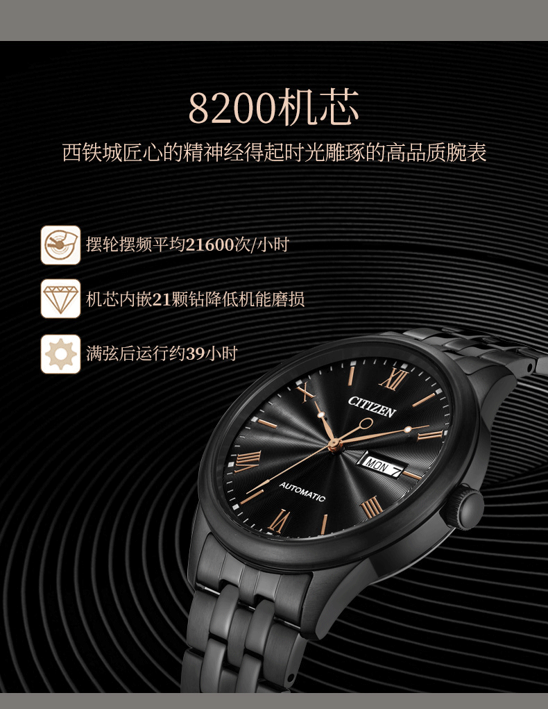Citizen西铁城 自动机械手表夜光复古商务休闲黑盘钢带男表 NH7505-84EB 黑色