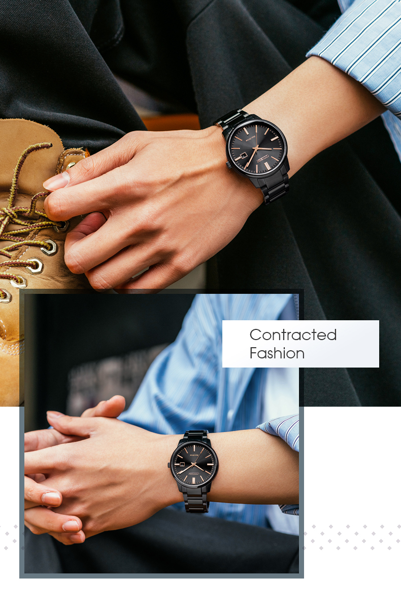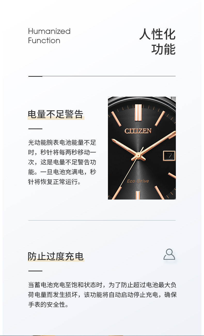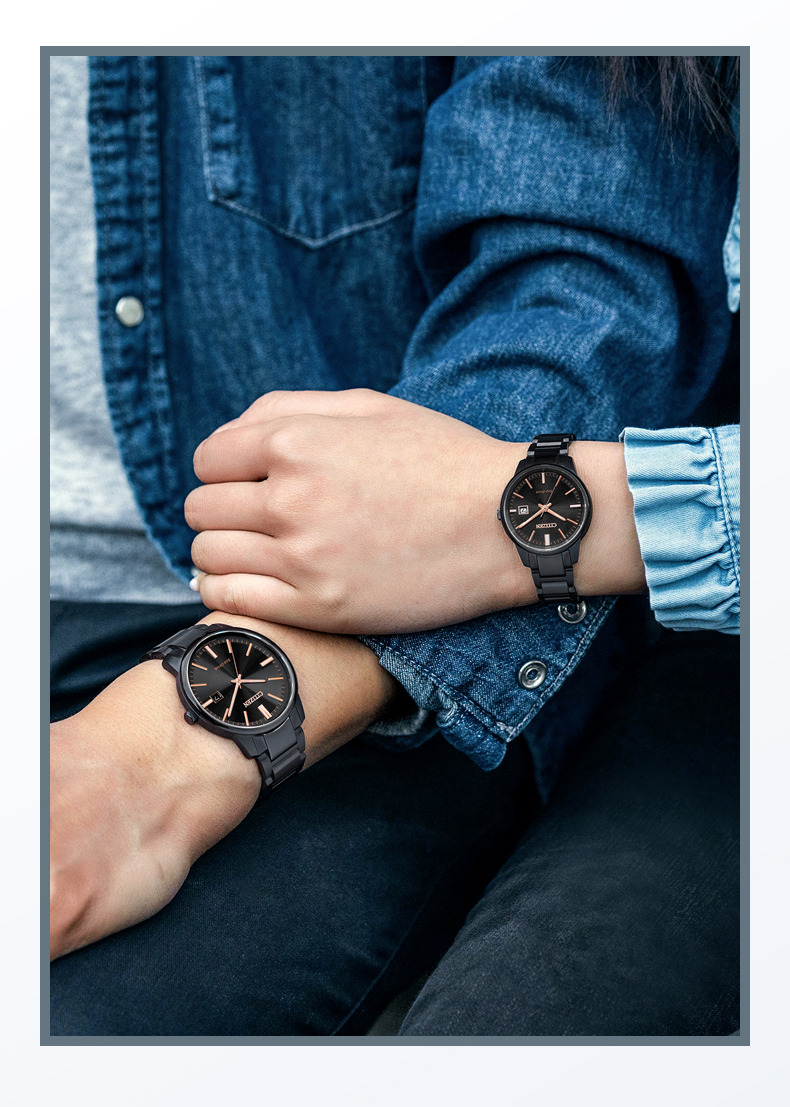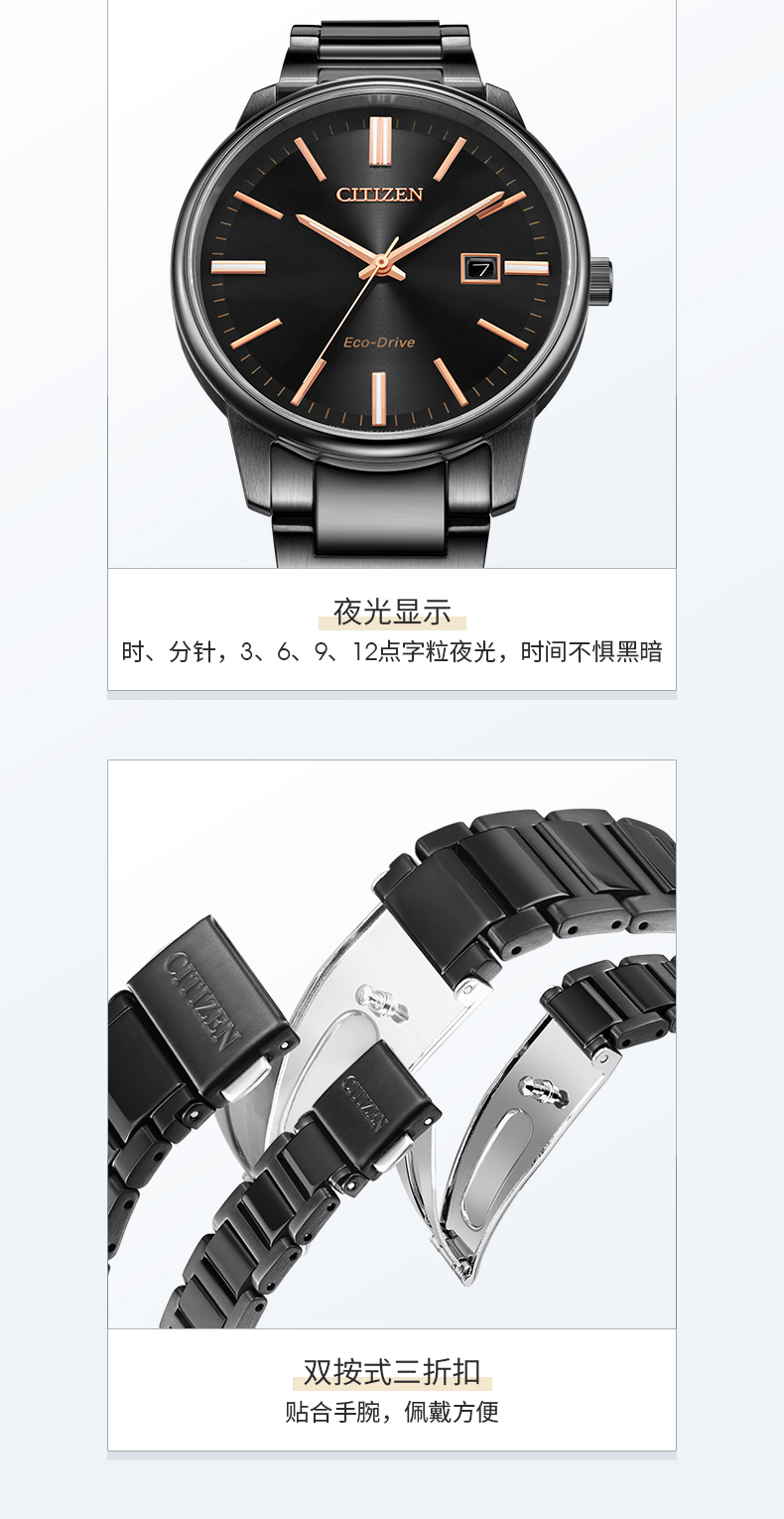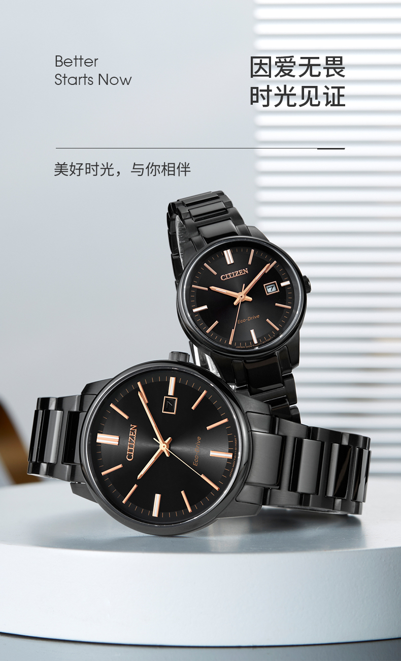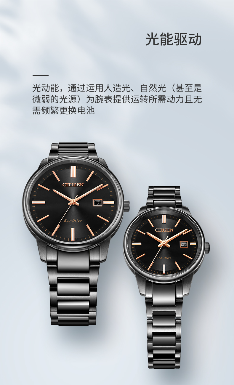 Citizen西铁城 光动能手表日期显示简约轻奢情侣对表 男表BM7527-89E 黑色