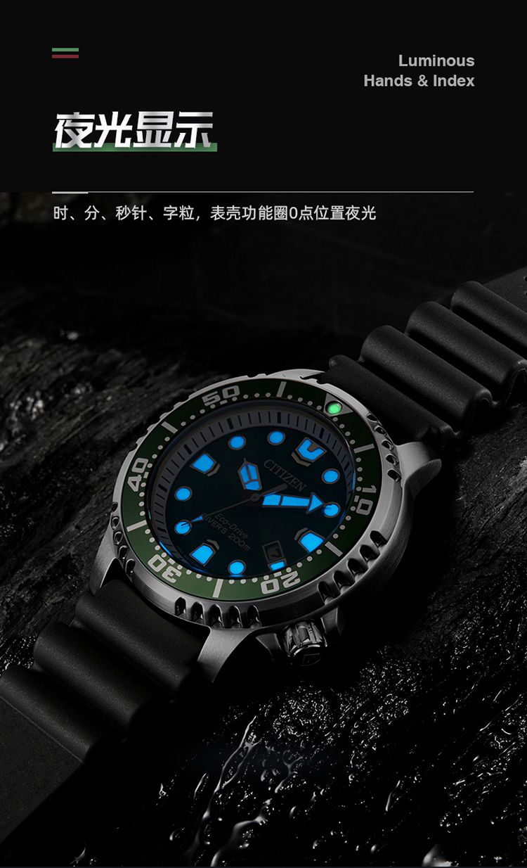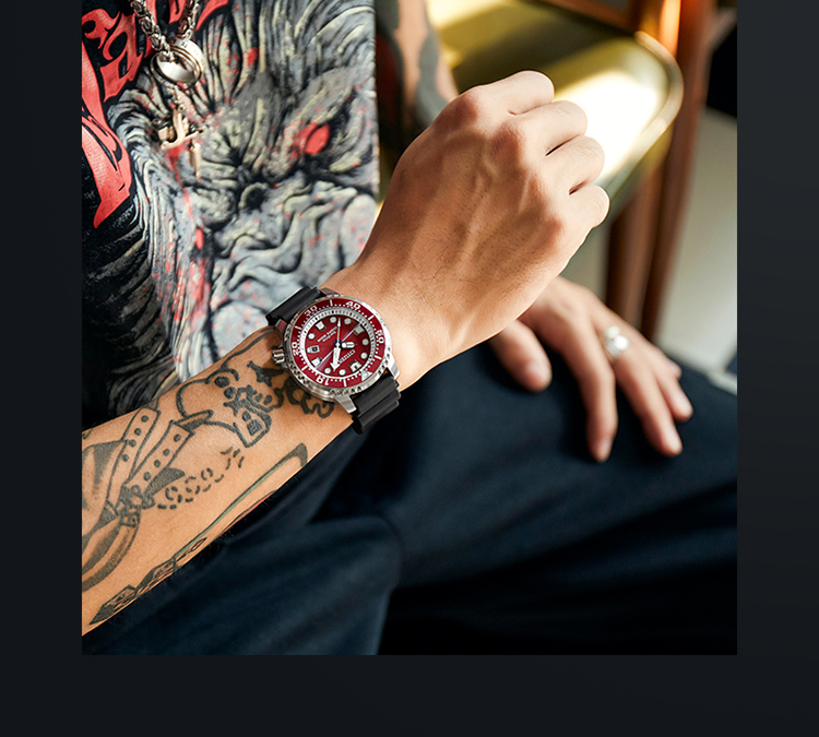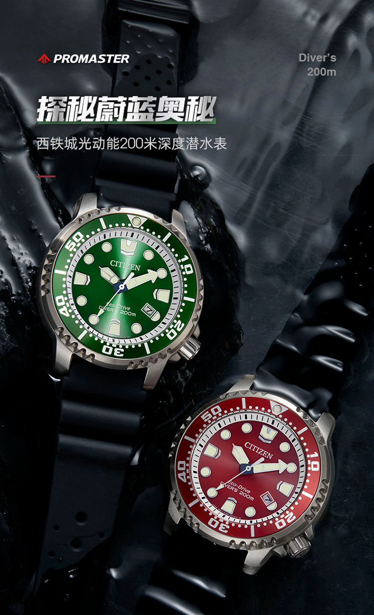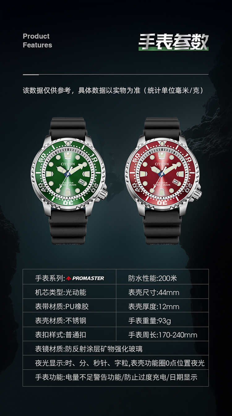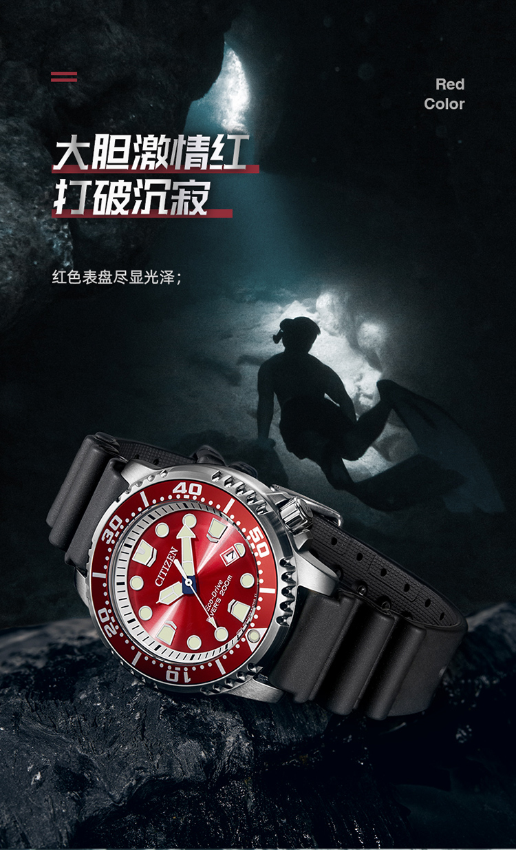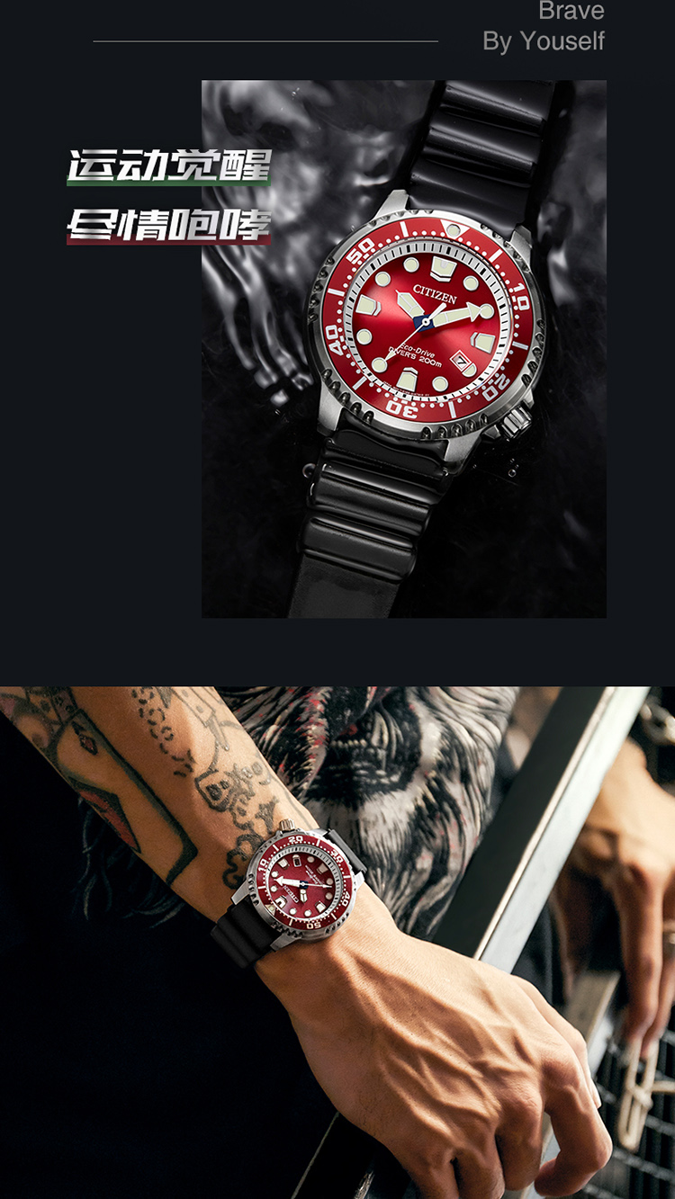 Citizen西铁城 光动能手表防水休闲运动红盘PU橡胶带男表 BN0159-15X 酒红
